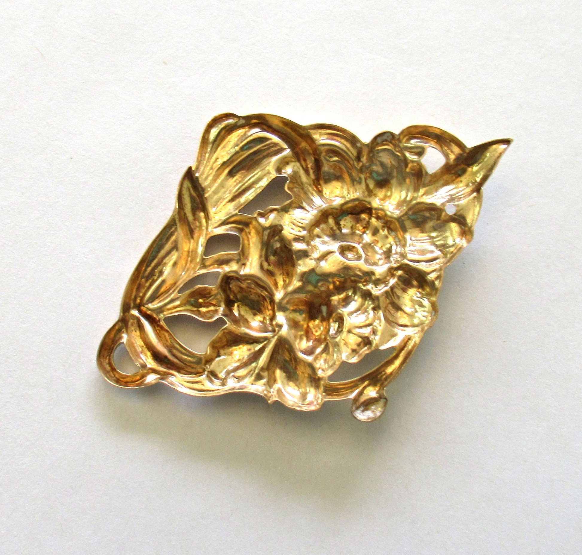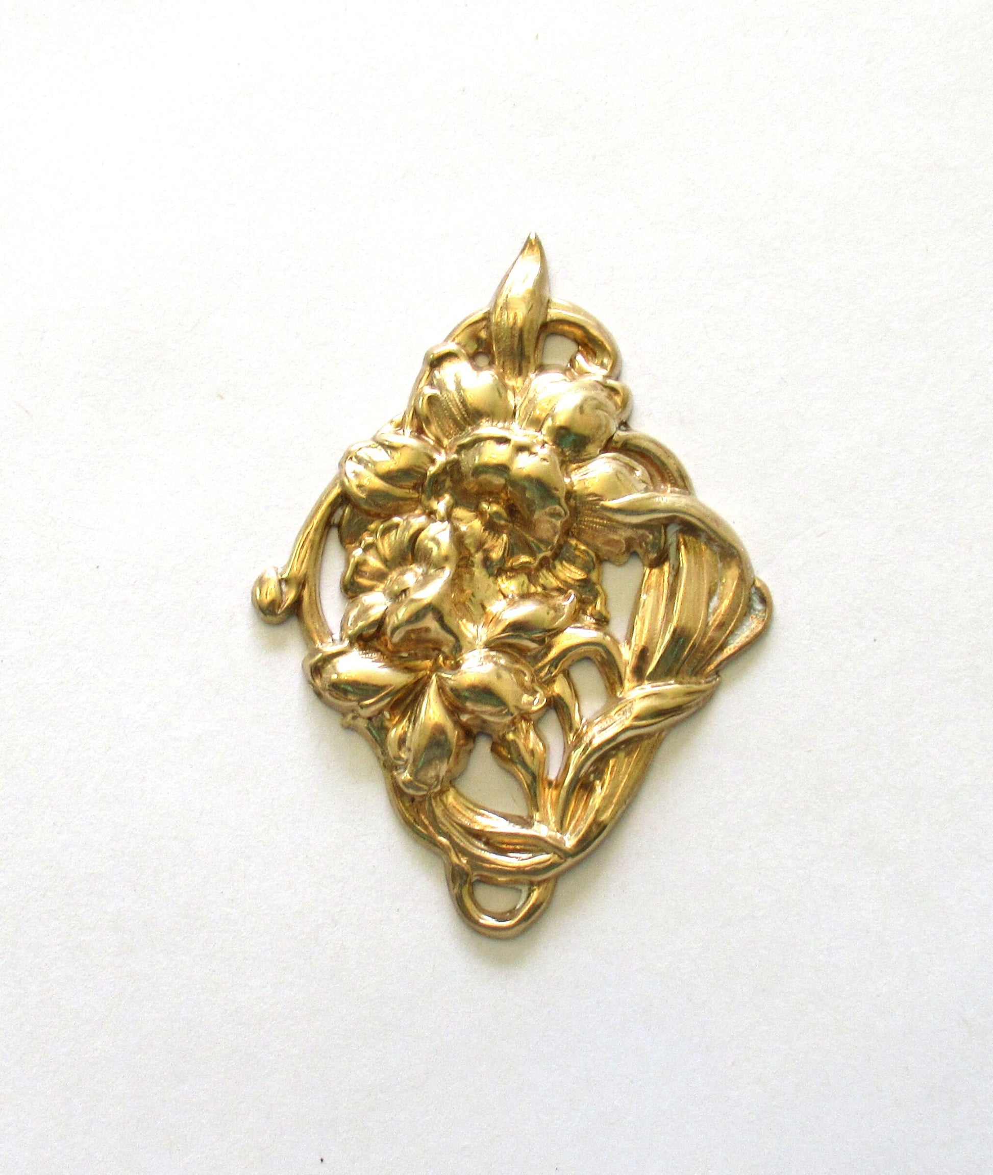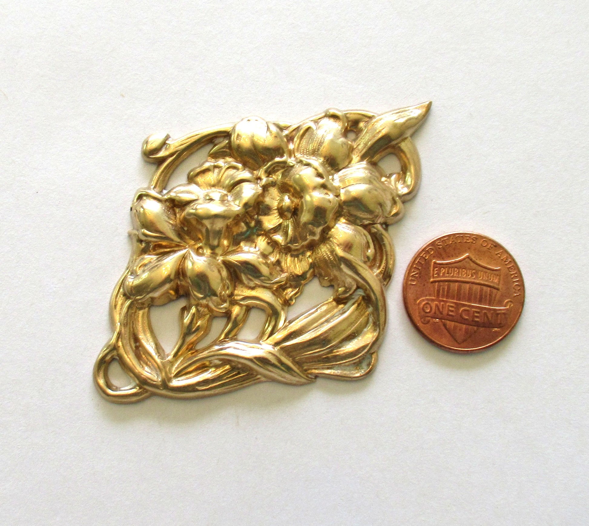 1 large floral raw brass stamping - Victorian Flower connector - pendant - ornament - component - 2.75" x 2"inches - made in the USA C00001