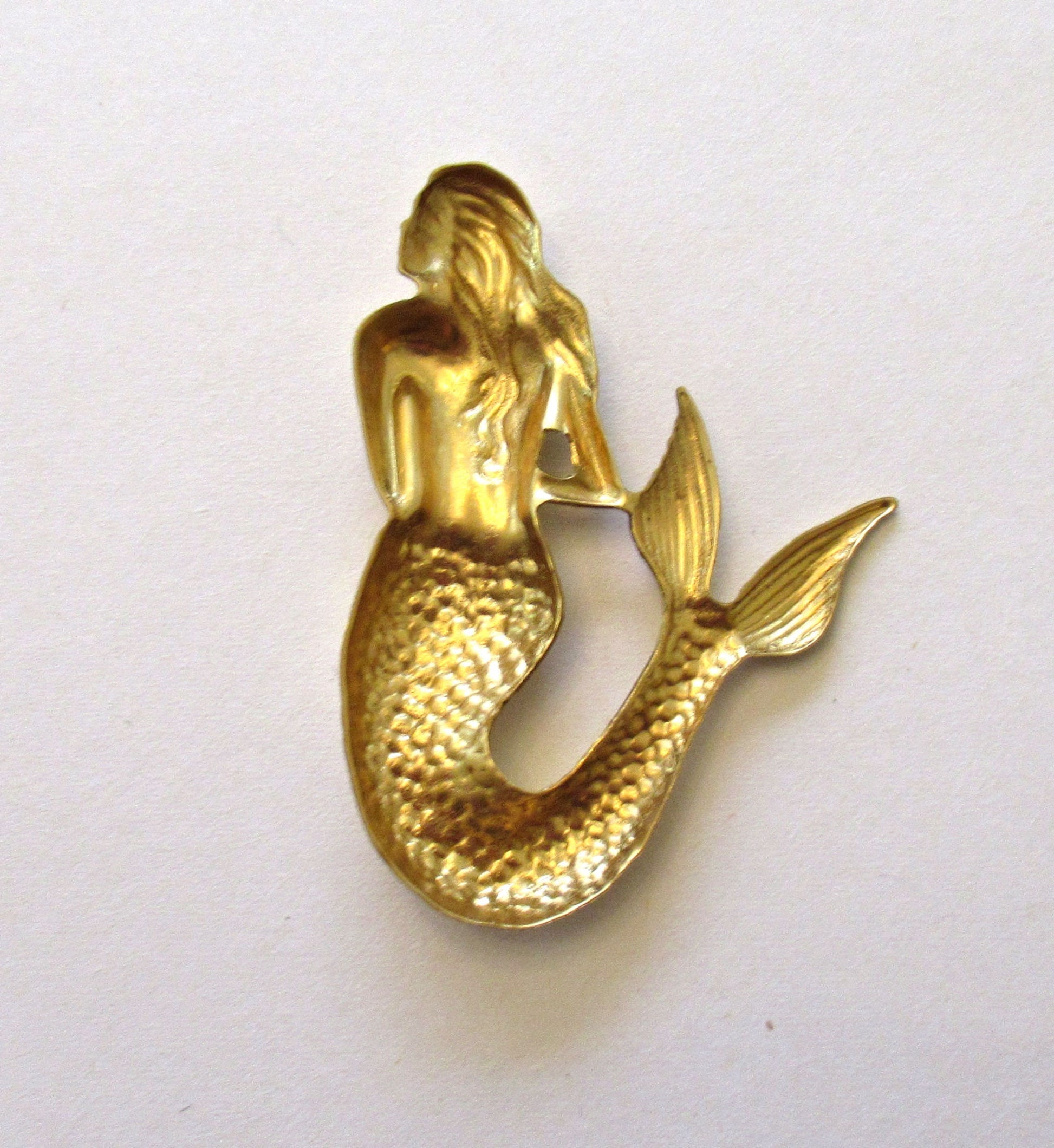 1 large raw brass stamping, - mermaid ornament - pendant - connector - 2" x 1.5"inches - USA made