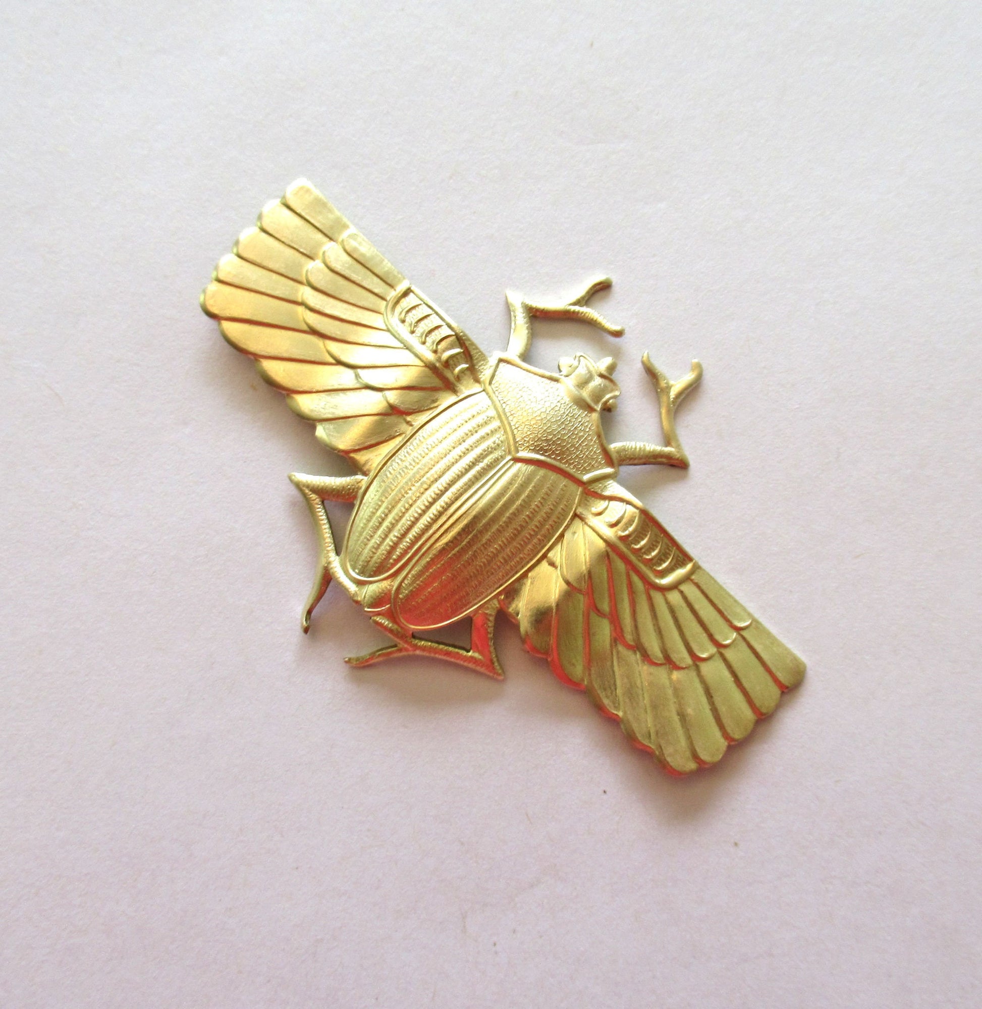 1 raw brass beetle stamping - flying Egyptian beetle, scarab, bug, pendant, charm, connector, ornament, 2.75" x 1.75" inches - C00761