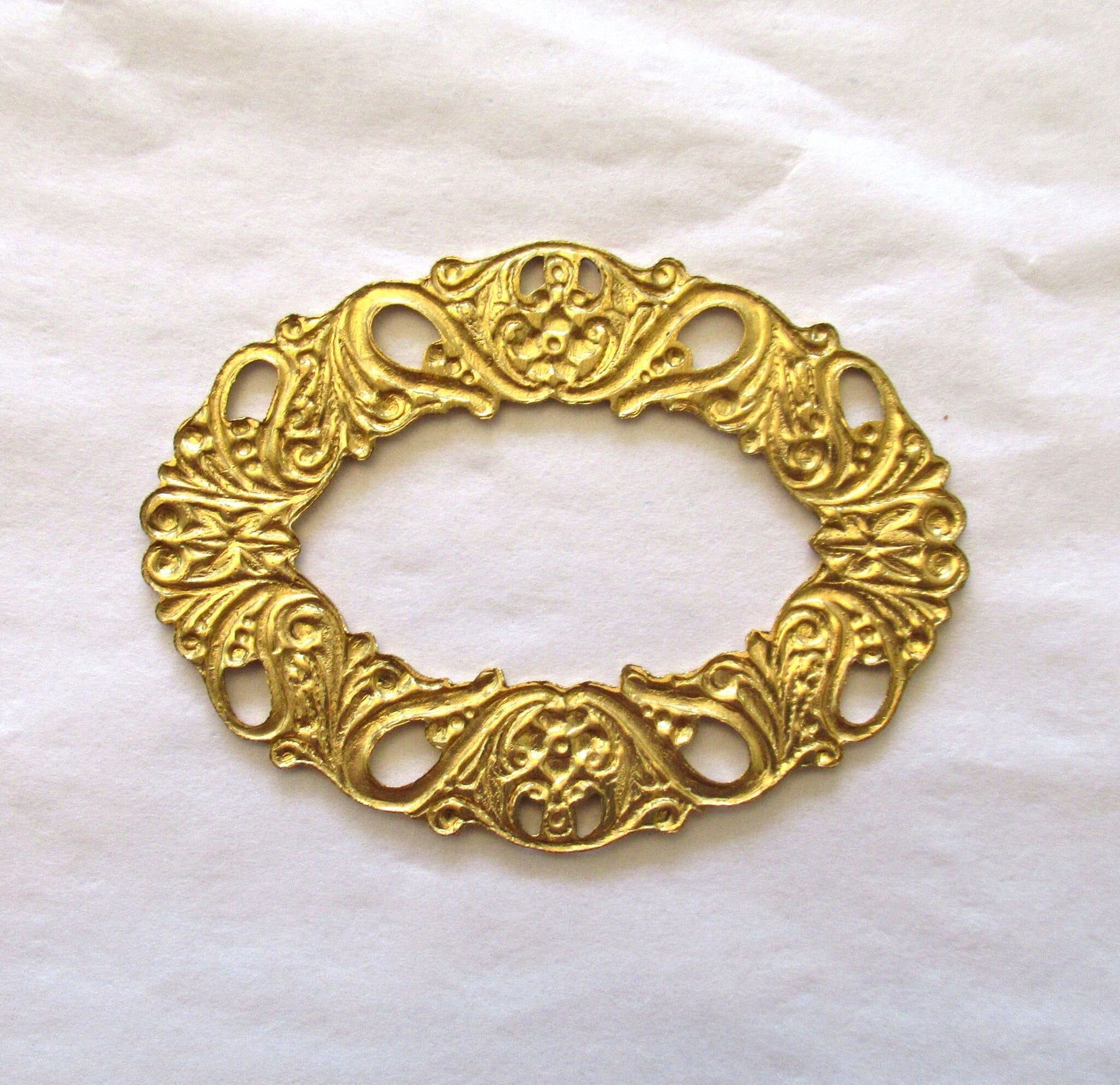 1 raw brass stamping - ornate oval wreath - connector ring - ornament - 55 x 42 mm - made in the USA C0078