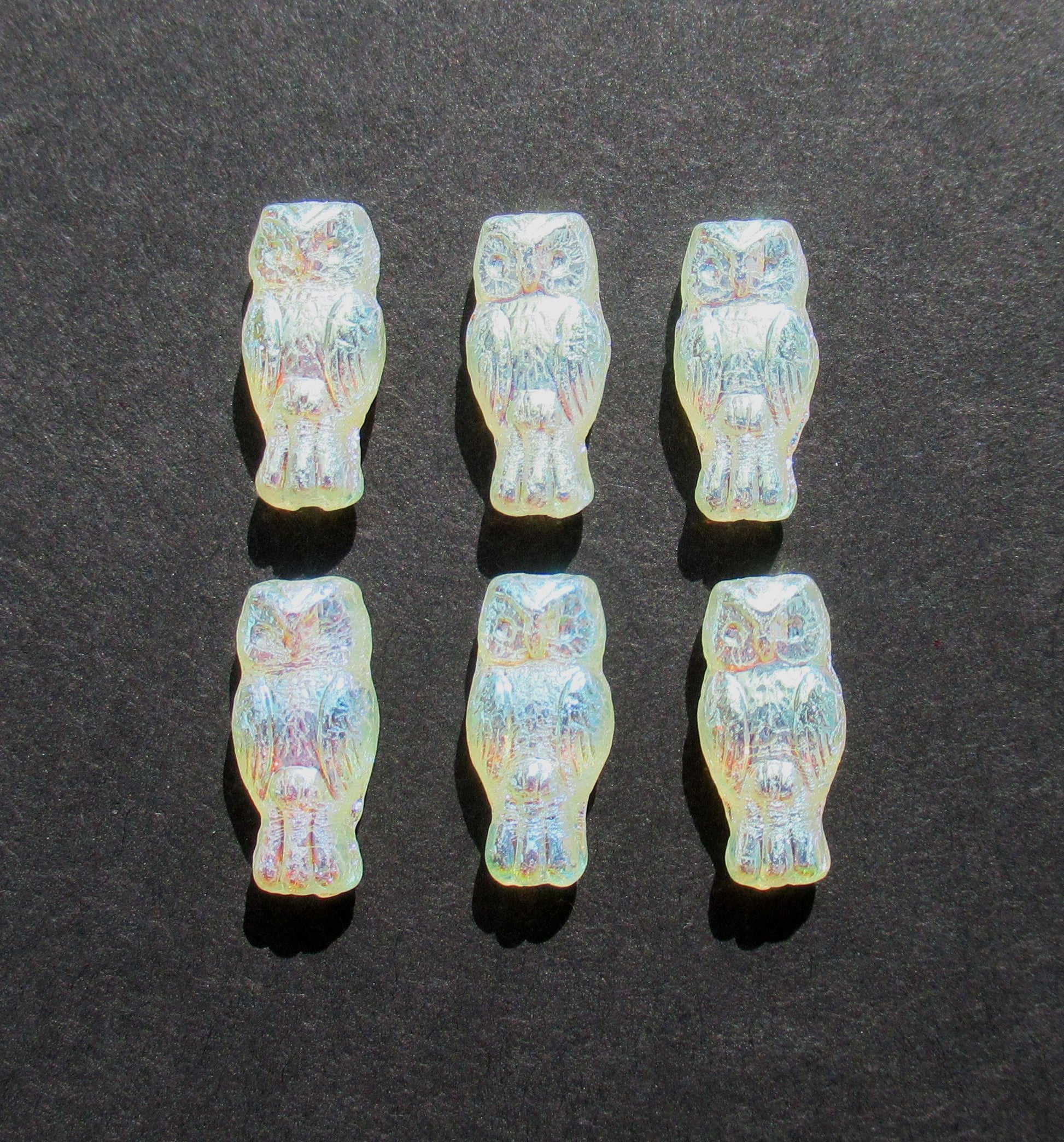 10 Czech glass owl beads - top drilled 7 x 15mm - light yellow or jonquil ab - pressed glass beads C0008