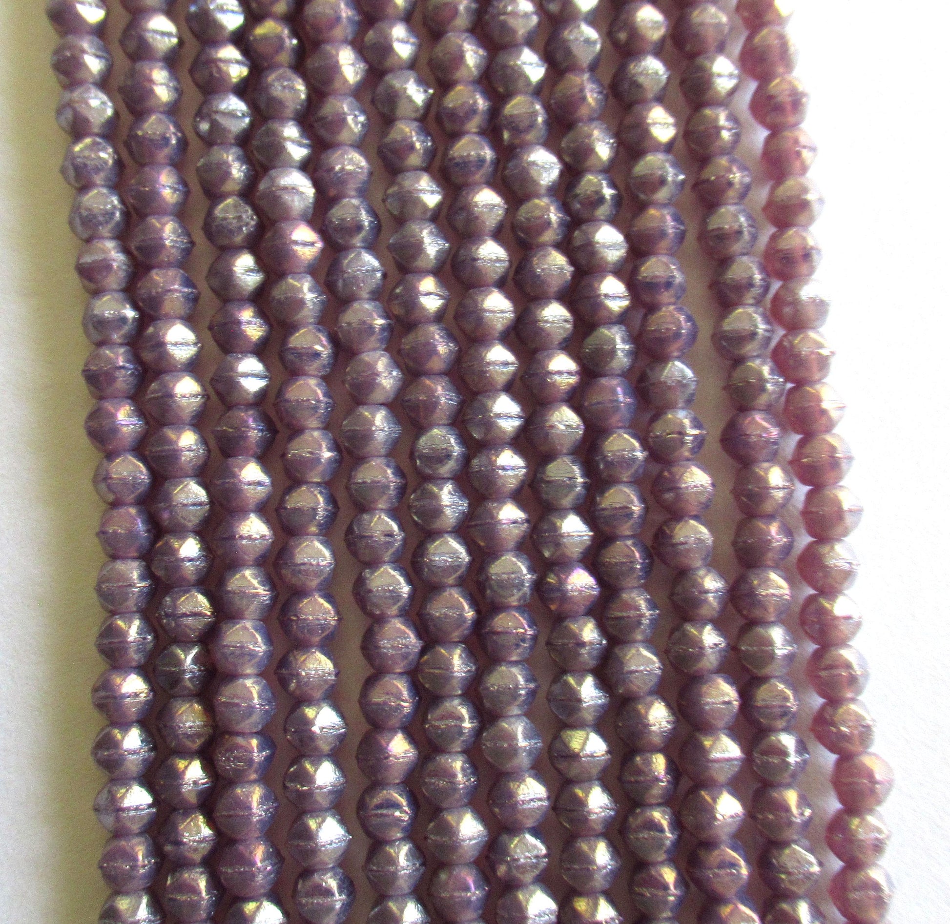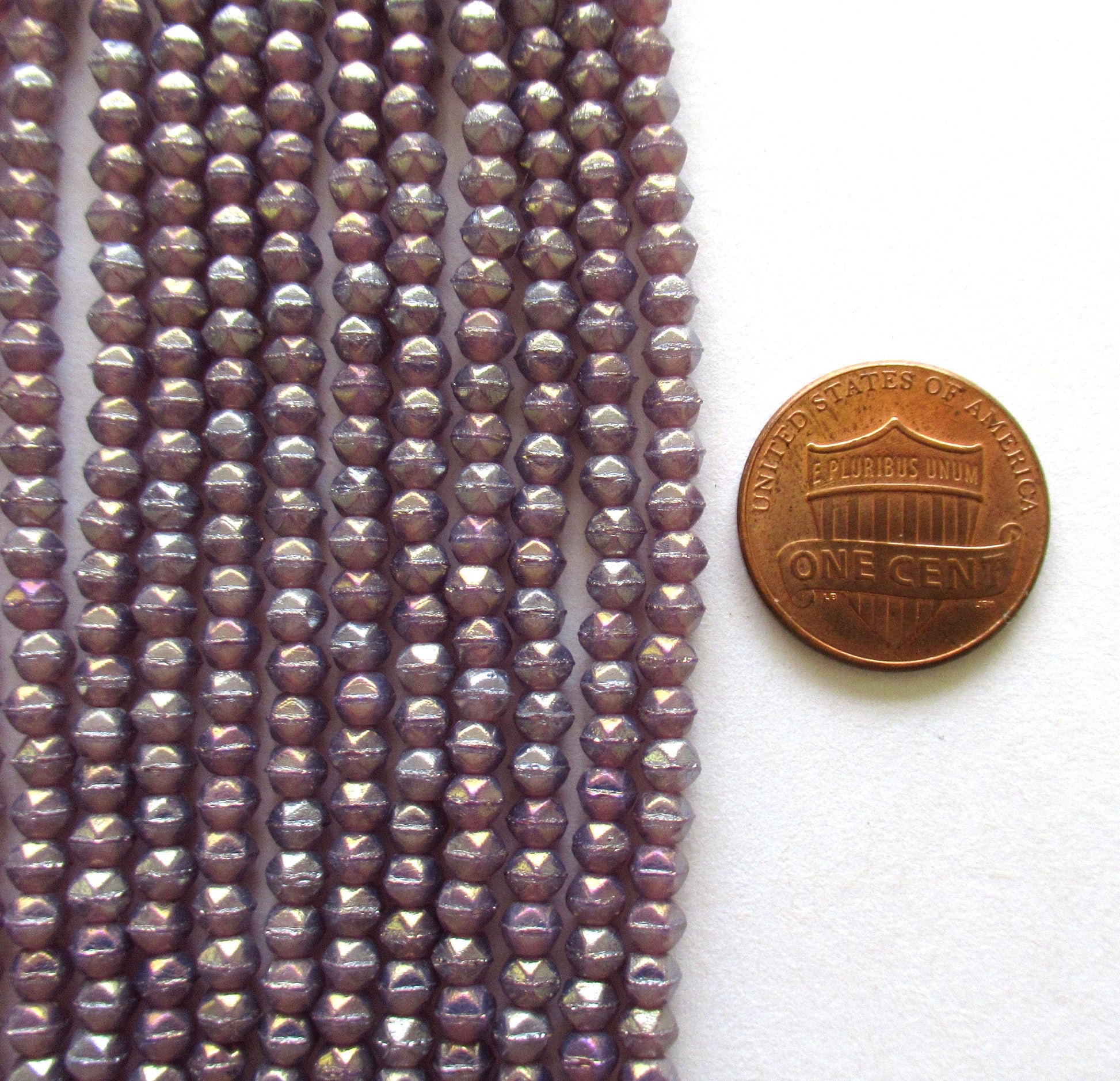 100 3mm Czech glass English cut beads - luster iris milky amethyst purple spacer beads - pressed glass beads - C0019