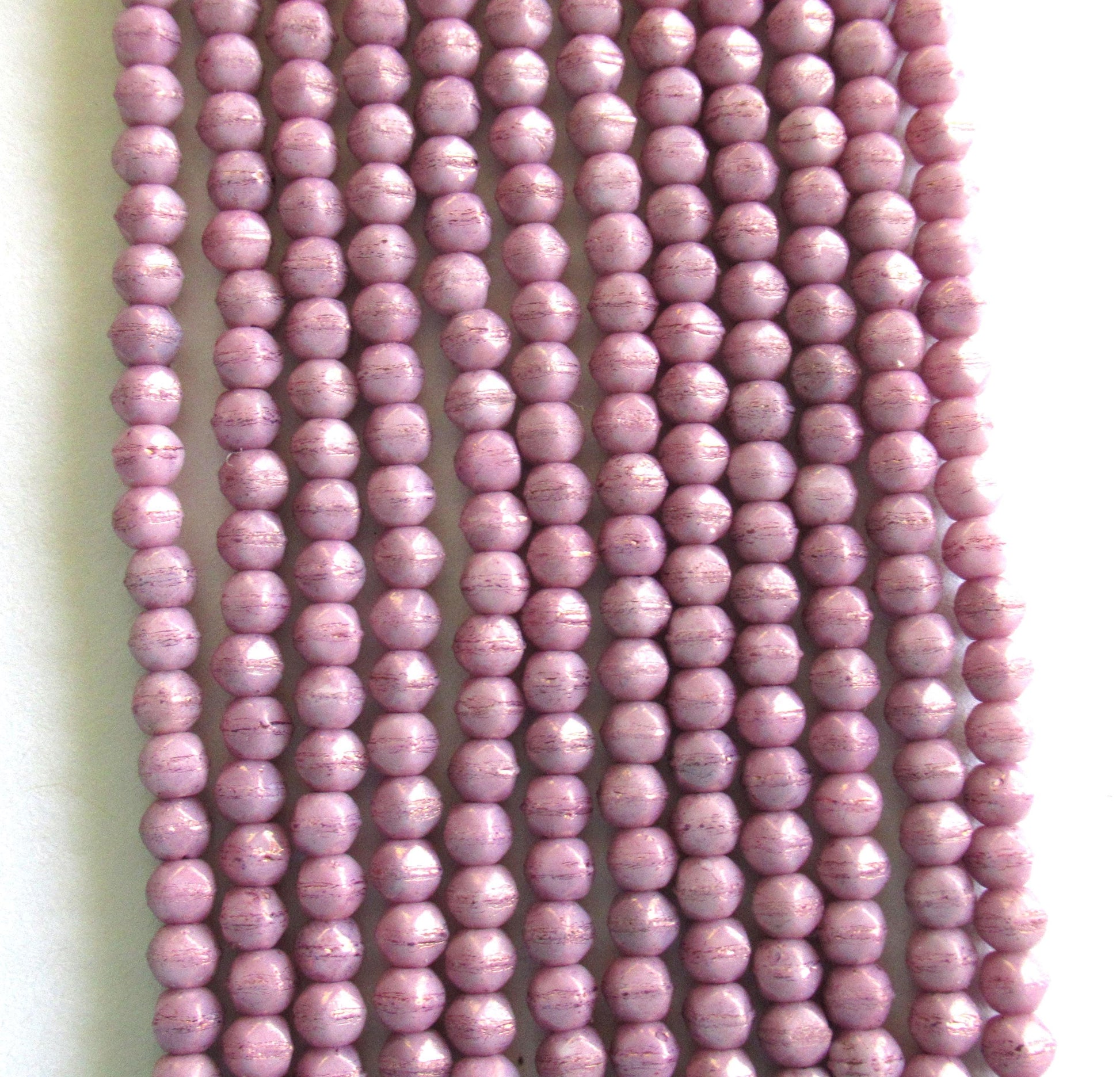 100 3mm Czech glass English cut beads - Opaque Lilac Luster - lavender or purple spacer beads - pressed glass beads - C0068