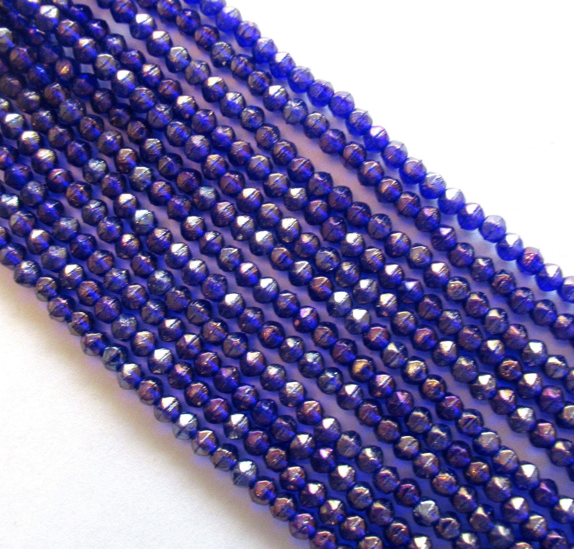 100 3mm English cut Czech glass beads - Luster Iris Cobalt Blue spacer beads - pressed glass beads - C0028