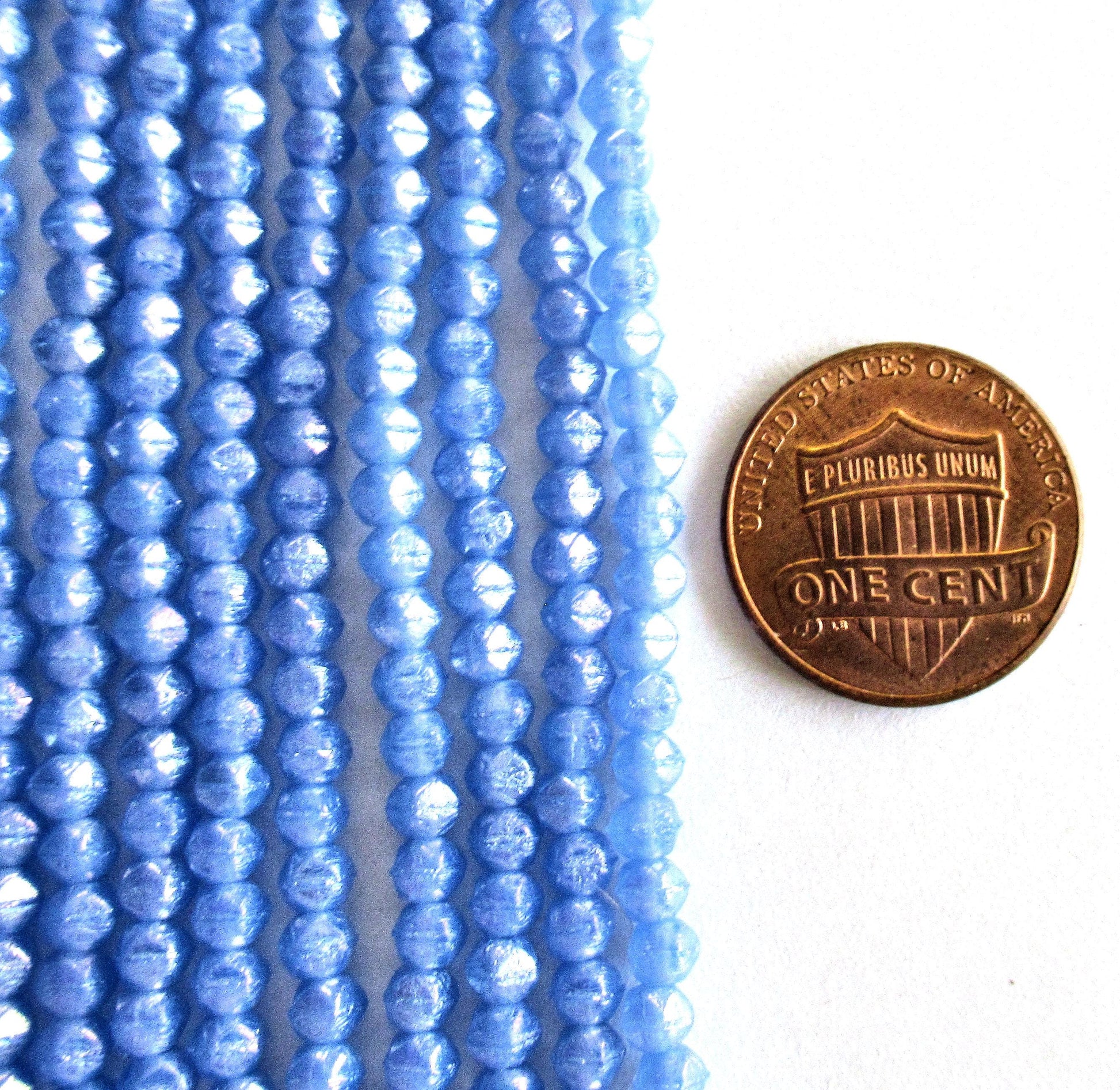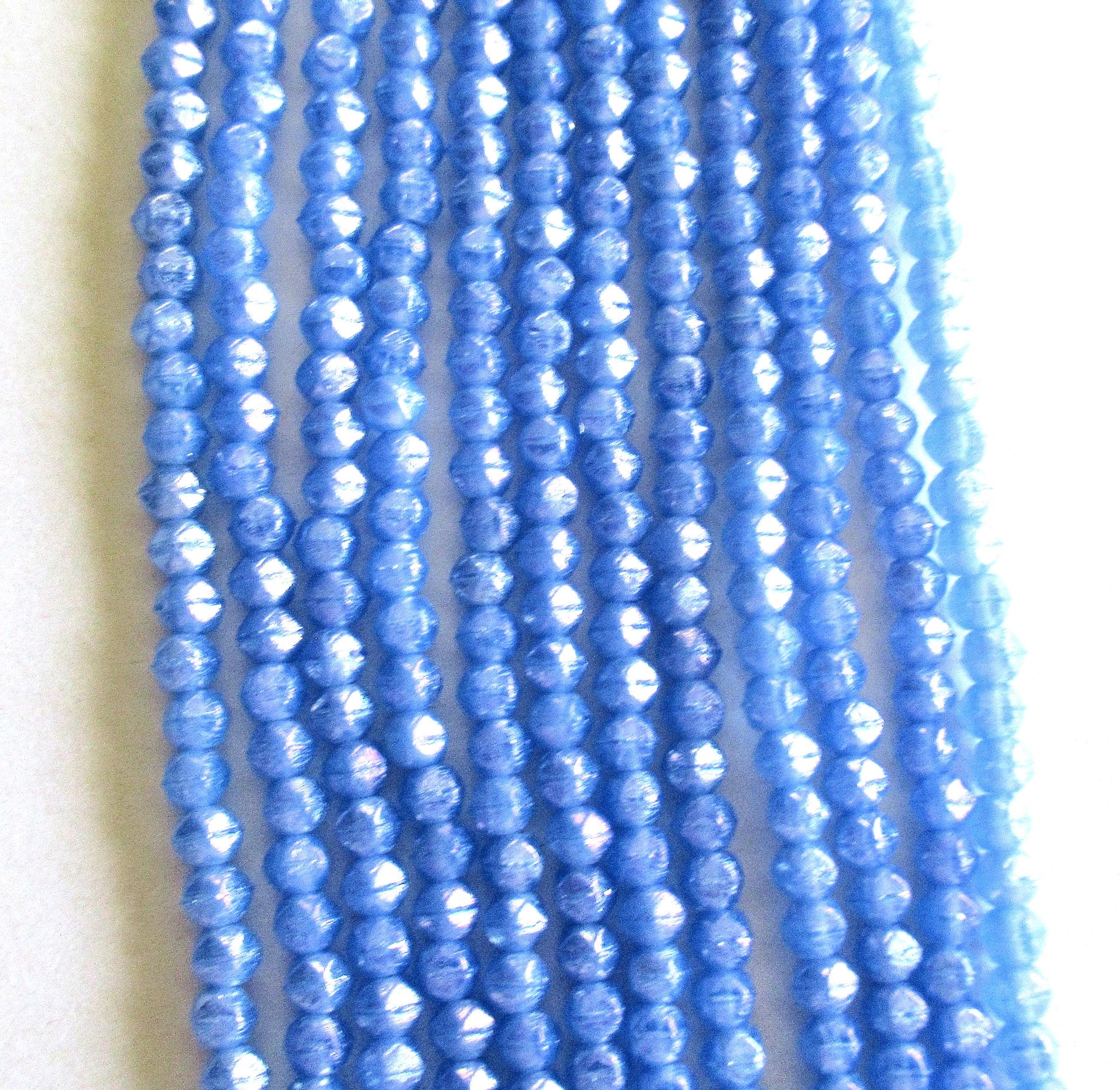 100 3mm English cut Czech glass beads - Luster Iris Milky Sapphire Blue spacer beads - pressed glass beads - C0019
