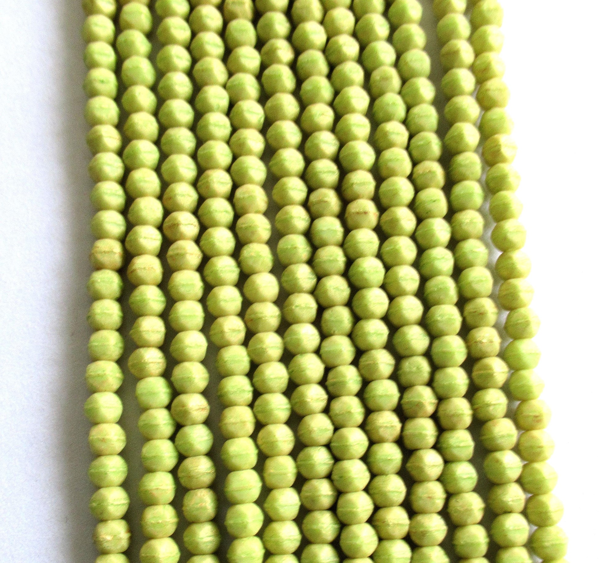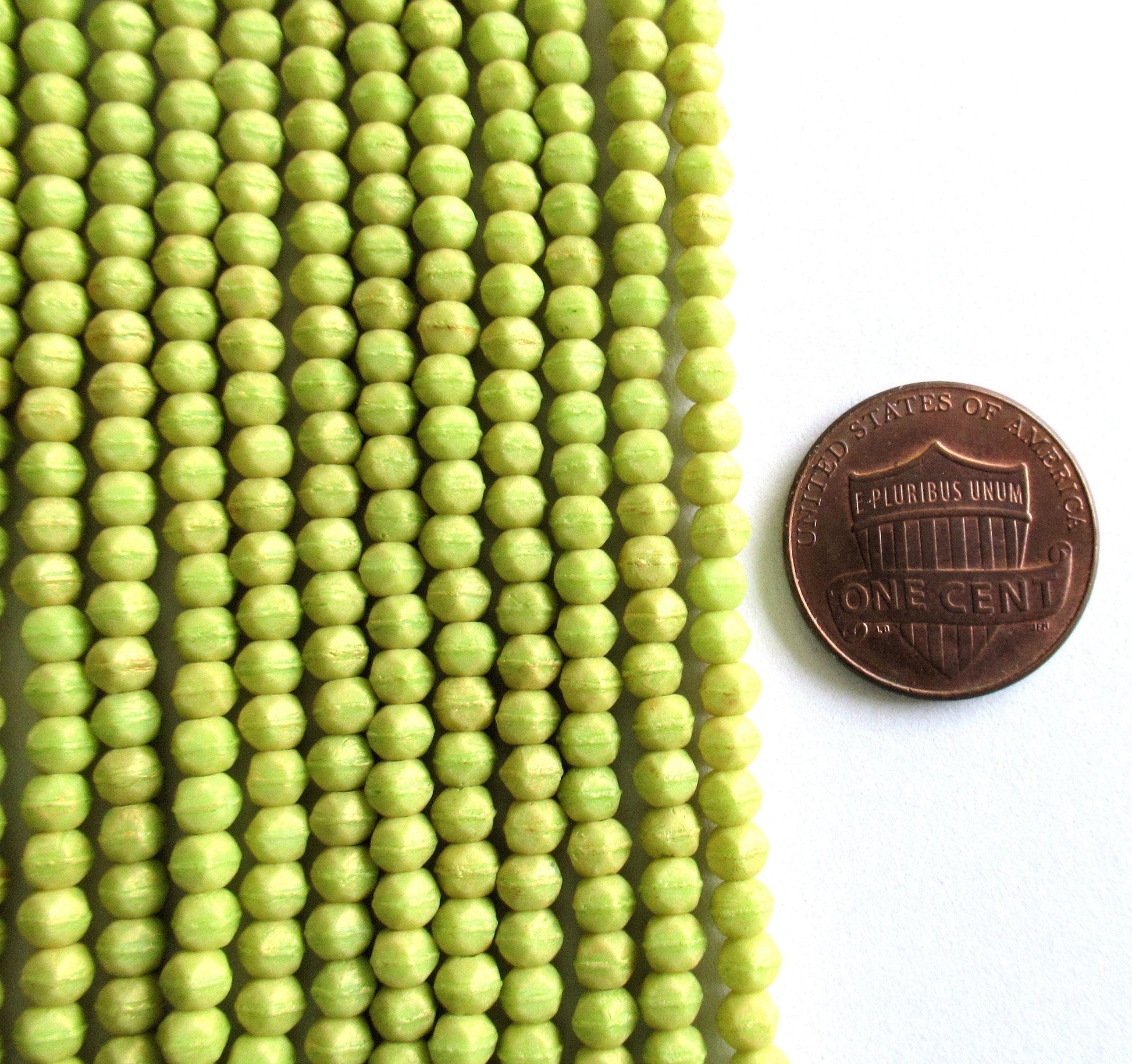 100 3mm English cut Czech glass beads - pacifica honeydew green spacer beads - pressed glass beads - C0077