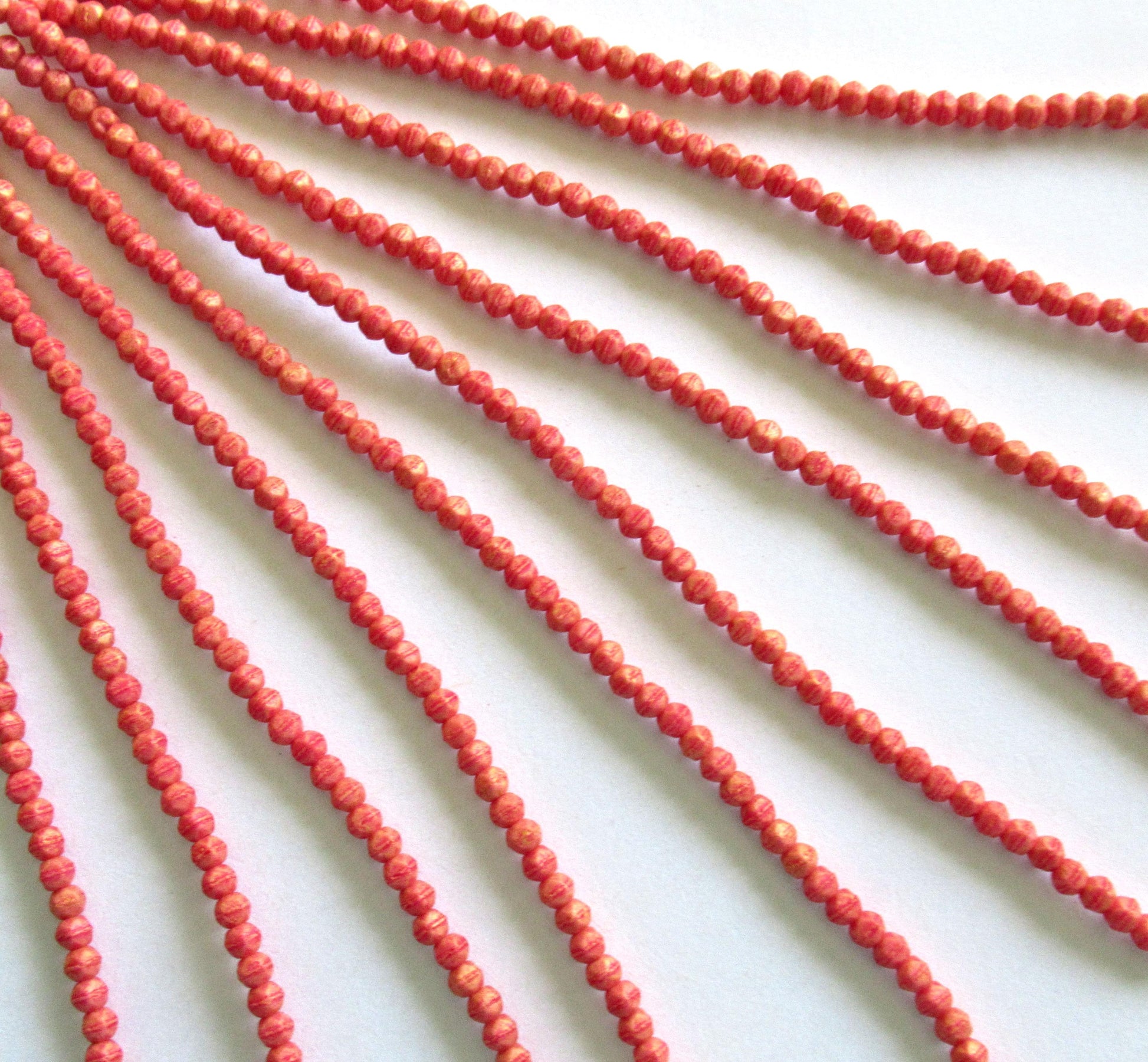 100 3mm English cut Czech glass beads - Pacifica Strawberry - opaque dark pink beads - pressed glass spacer beads - C0077