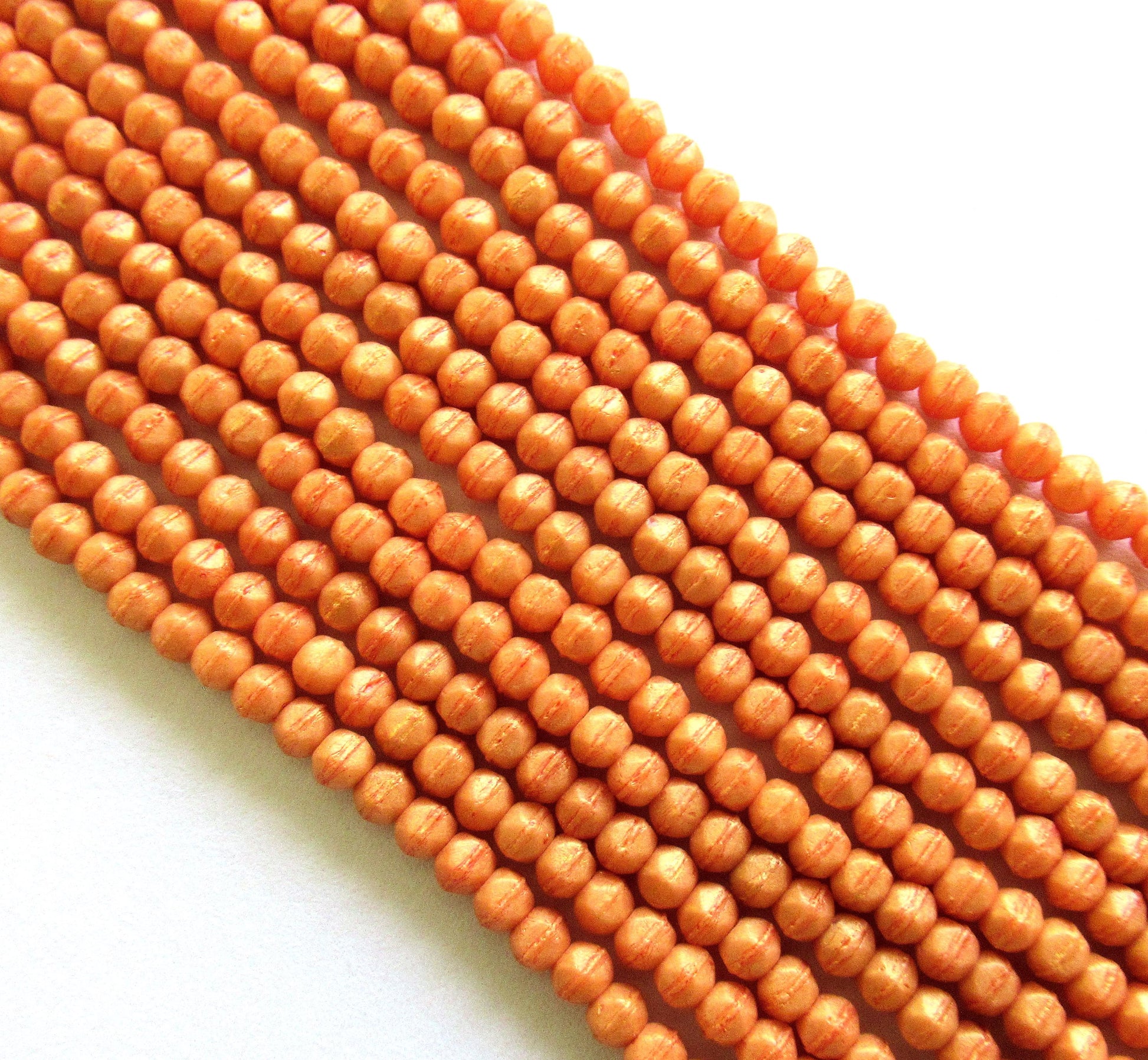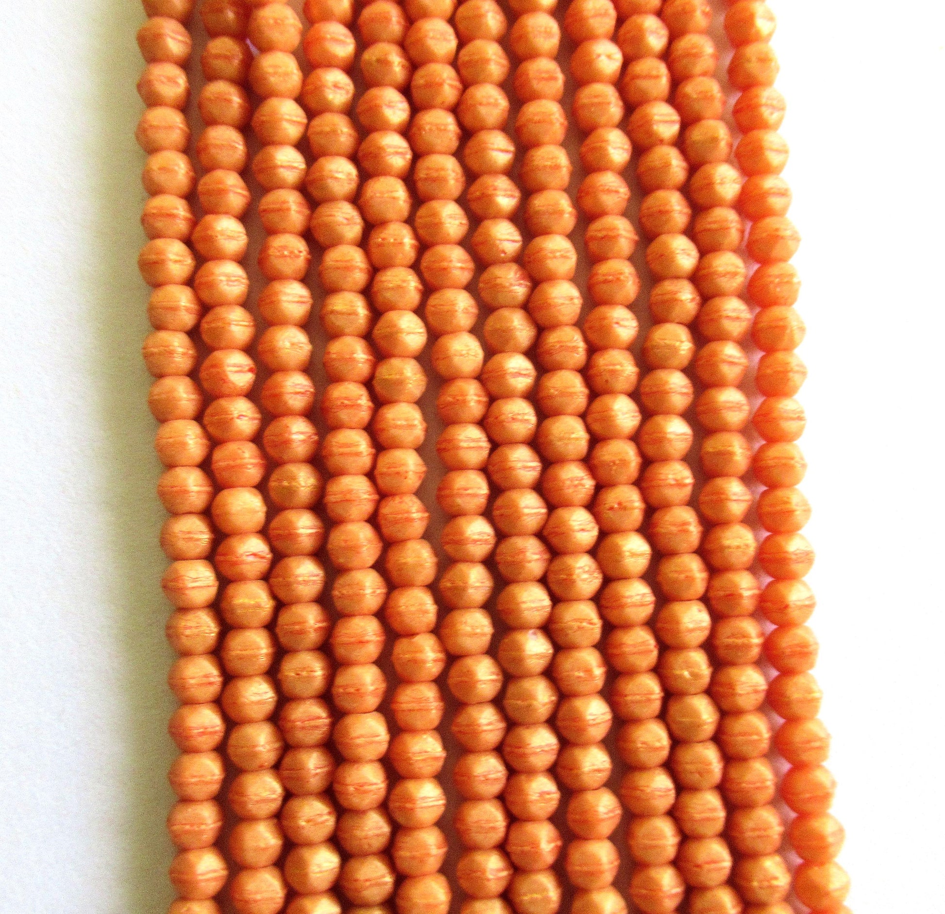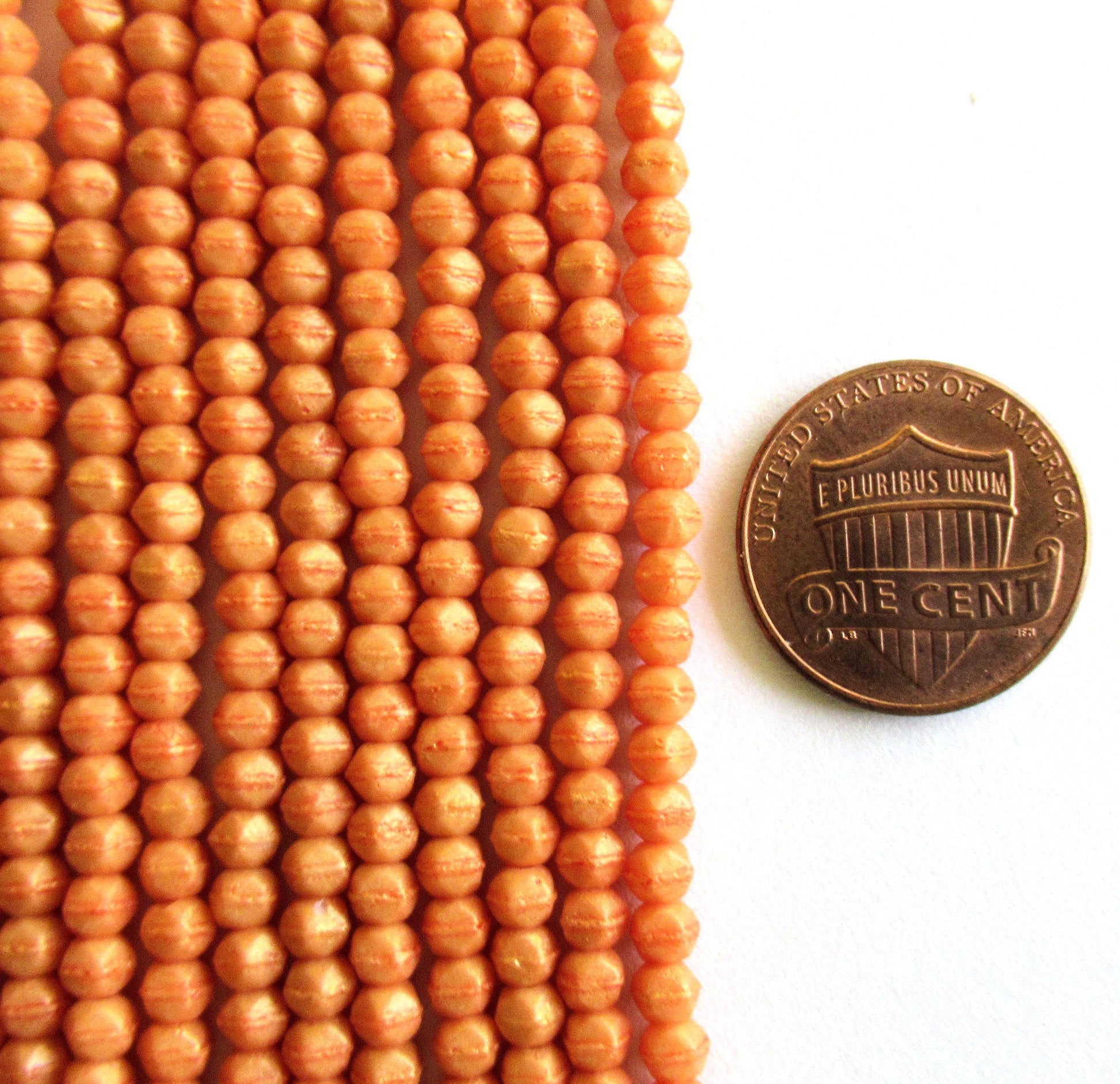 100 3mm English cut Czech glass beads - Pacifica Tangerine opaque orange spacer beads - pressed glass beads - C0077