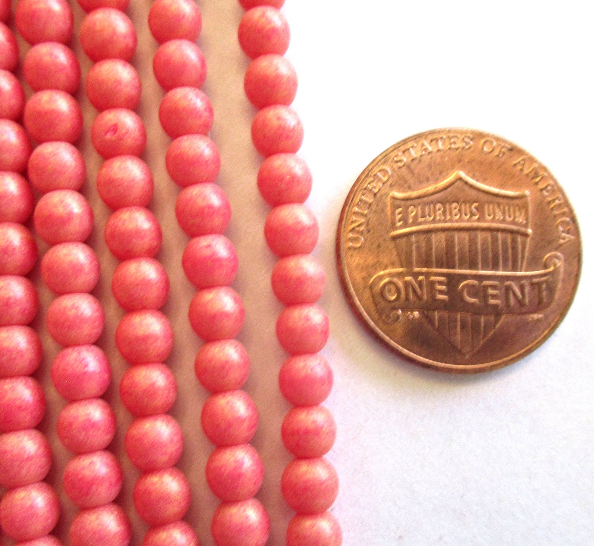 This is a lot of 100 4mm Pacifica Strawberry pink Czech glass druk beads.