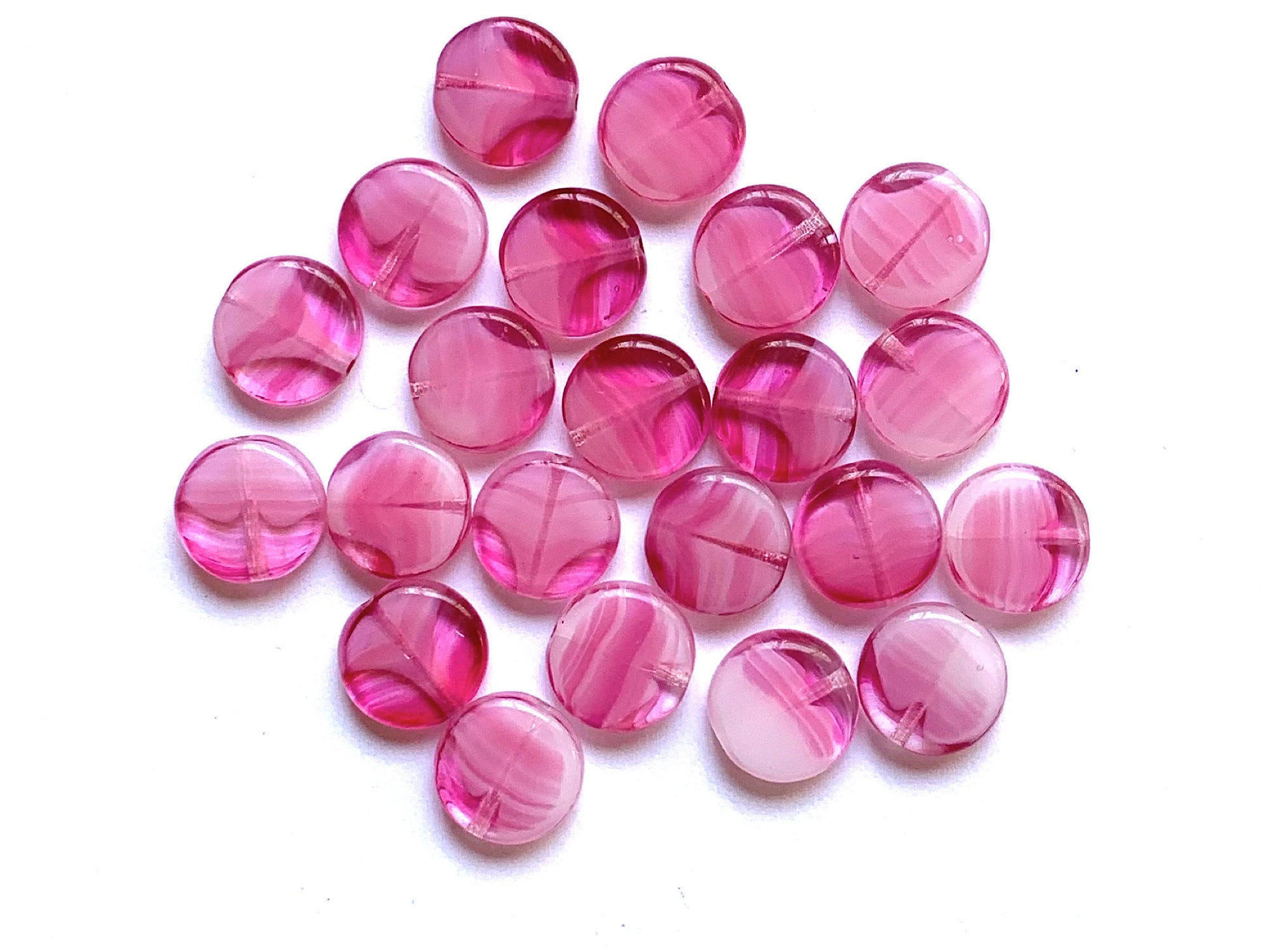 15 Czech glass coin beads - 10mm pink marbled, milky, striped disc beads C0057