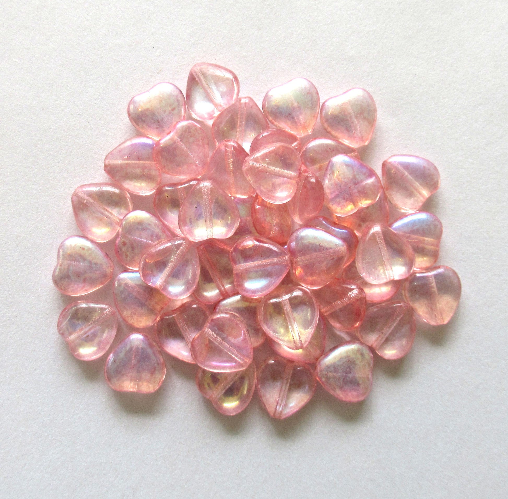 15 Czech glass heart beads - 10mm transparent pink ab beads - C00011