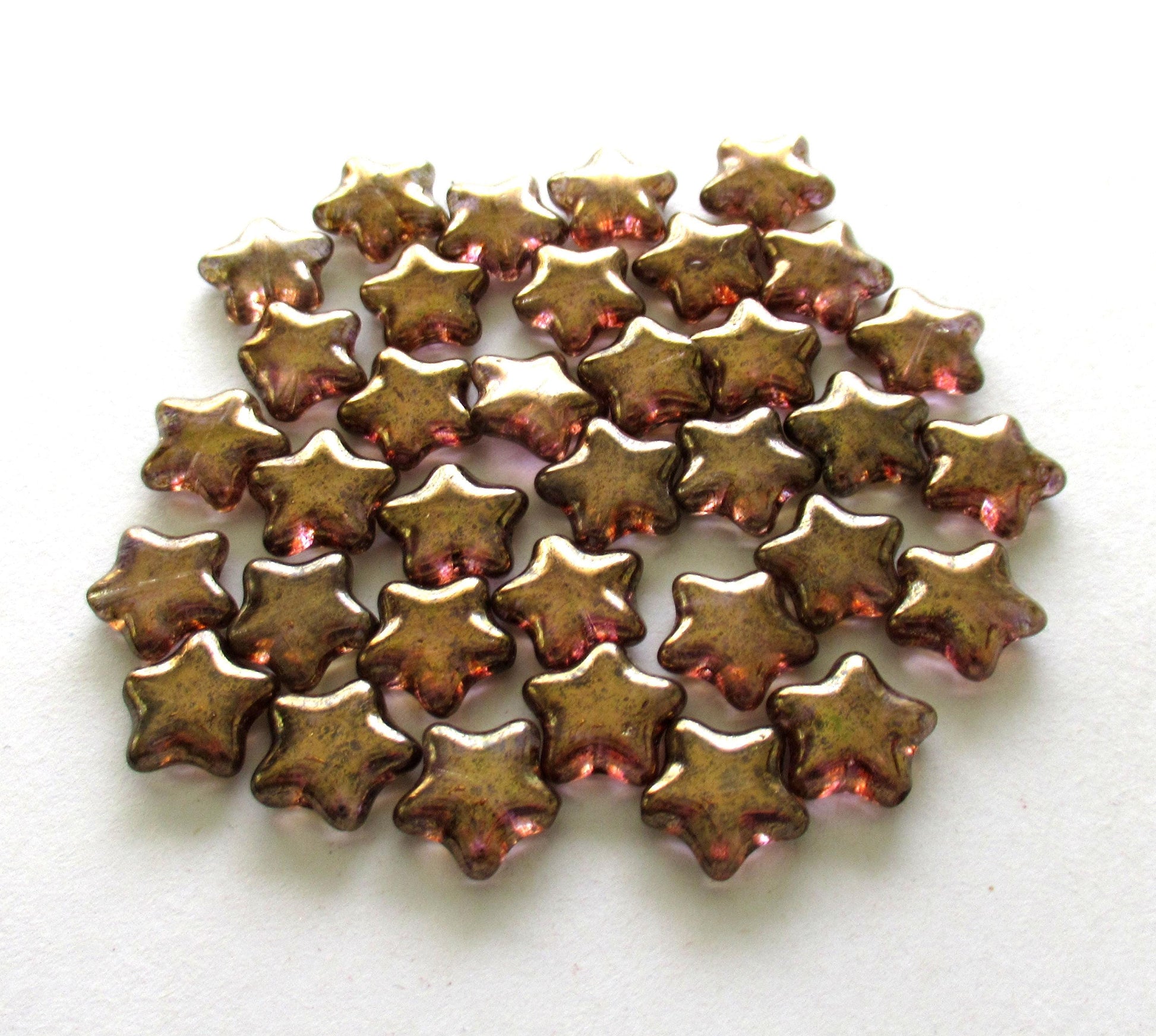 15 Czech glass star beads - 12mm - iridescent lumi brown pressed glass beads - C0055
