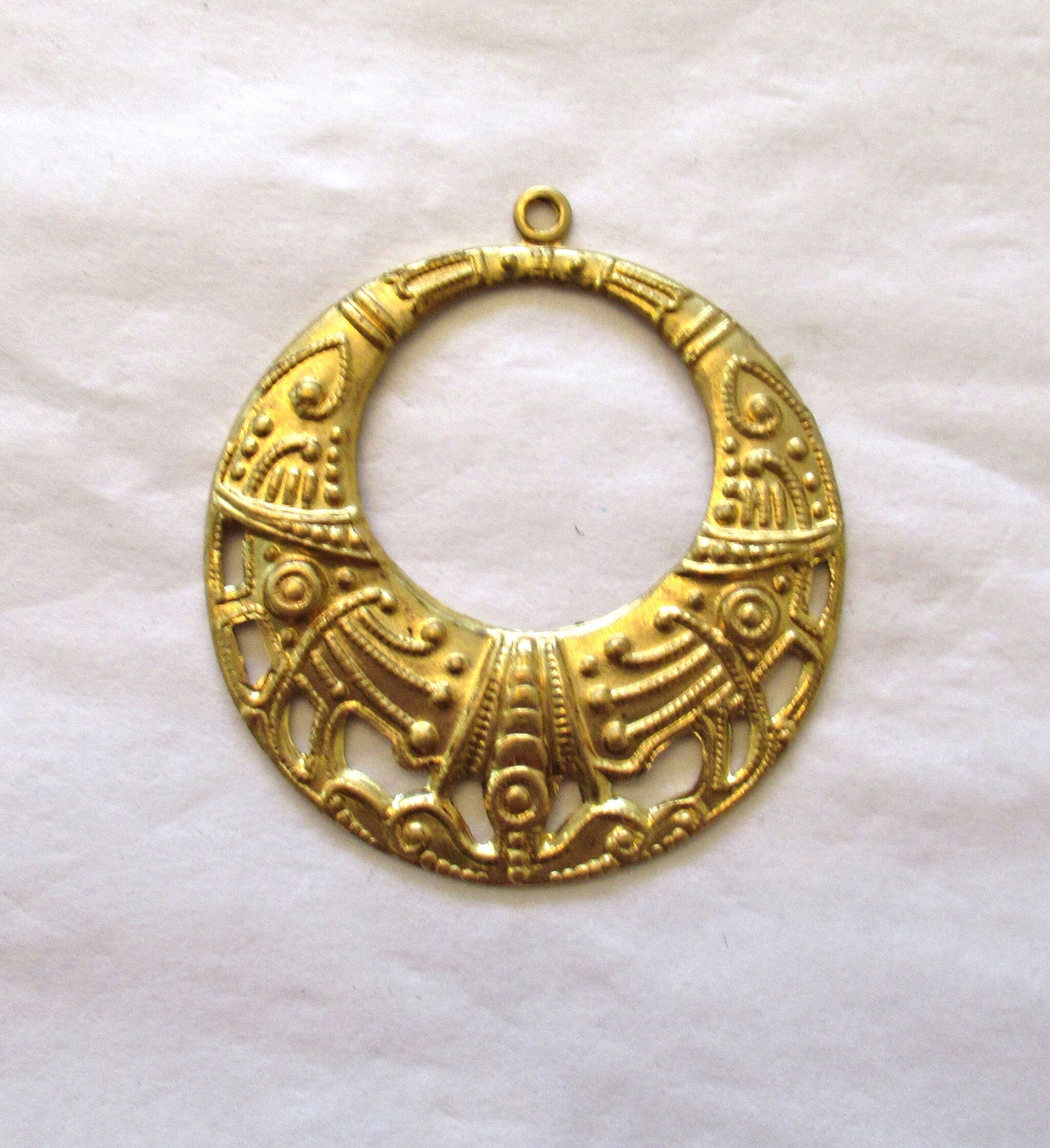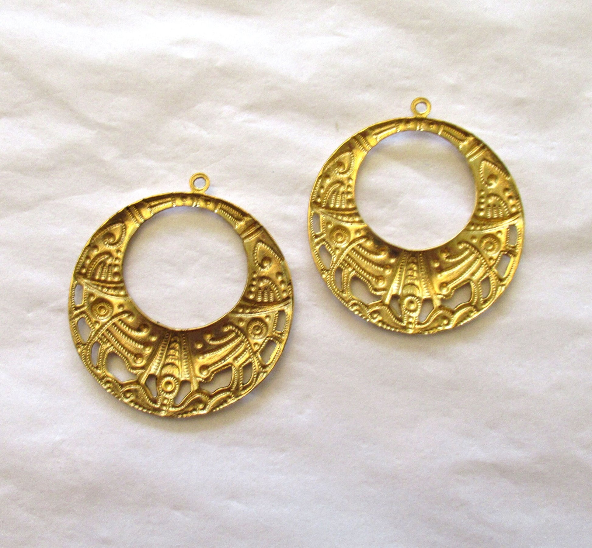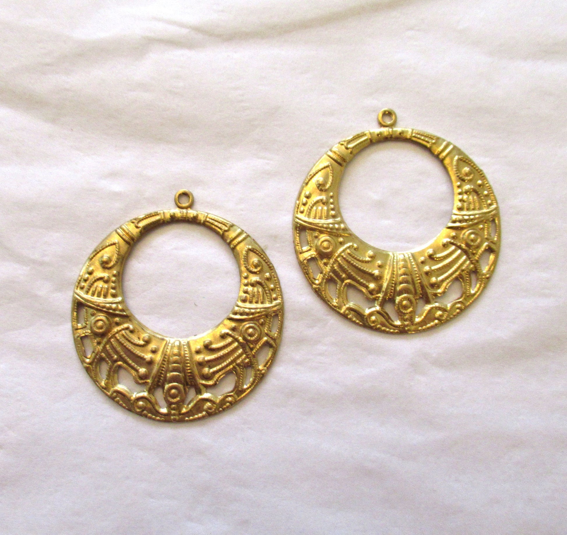 2 Raw Brass Stampings - ornate dangles - charms - drops - earrings 36mm - made in the USA C00542