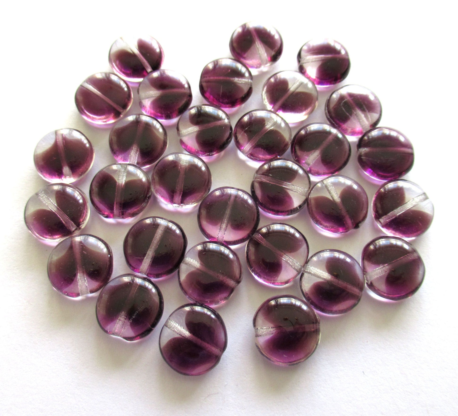 20 Czech glass coin beads - 10mm amethyst purple & crystal disc beads C0038