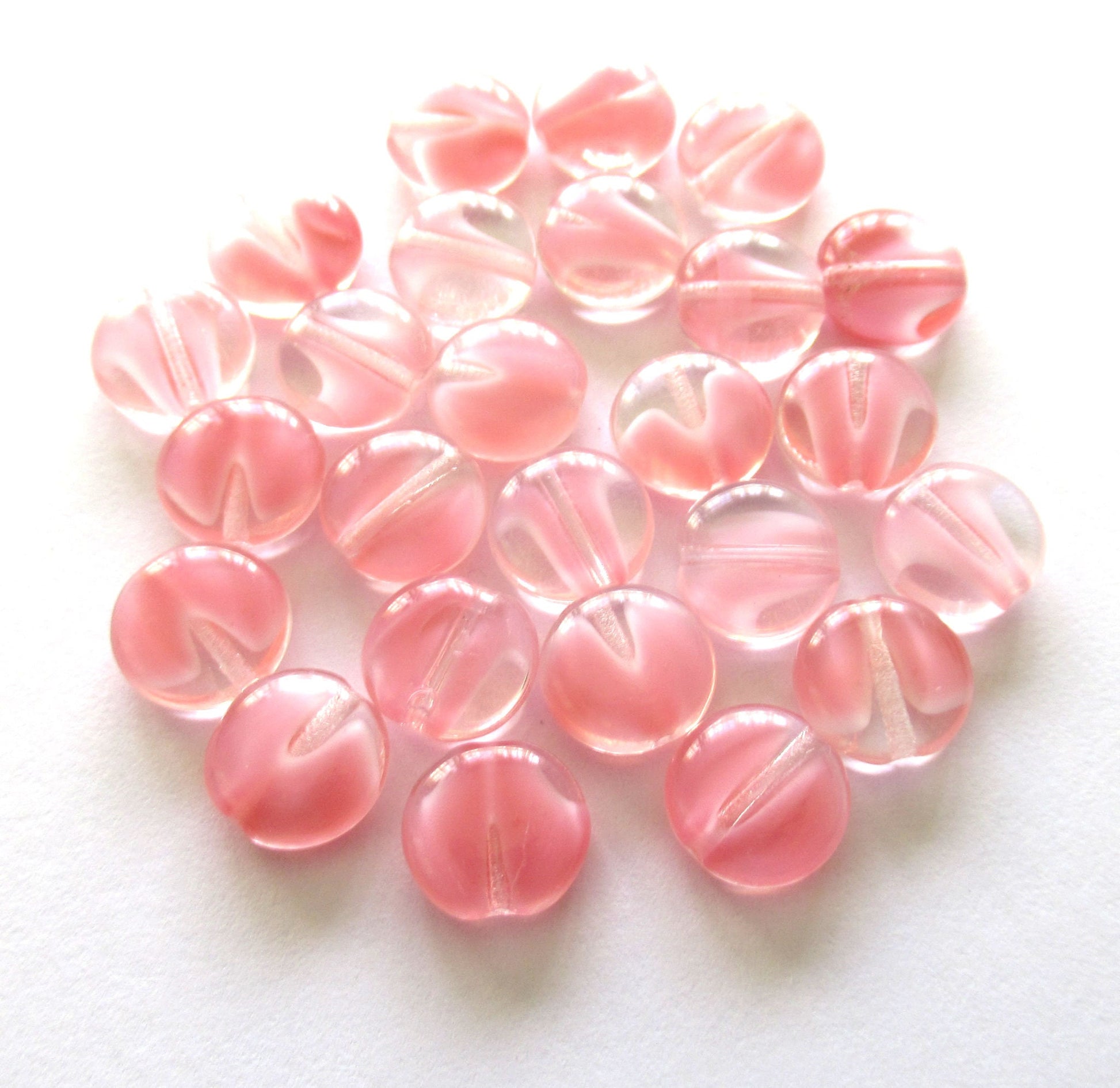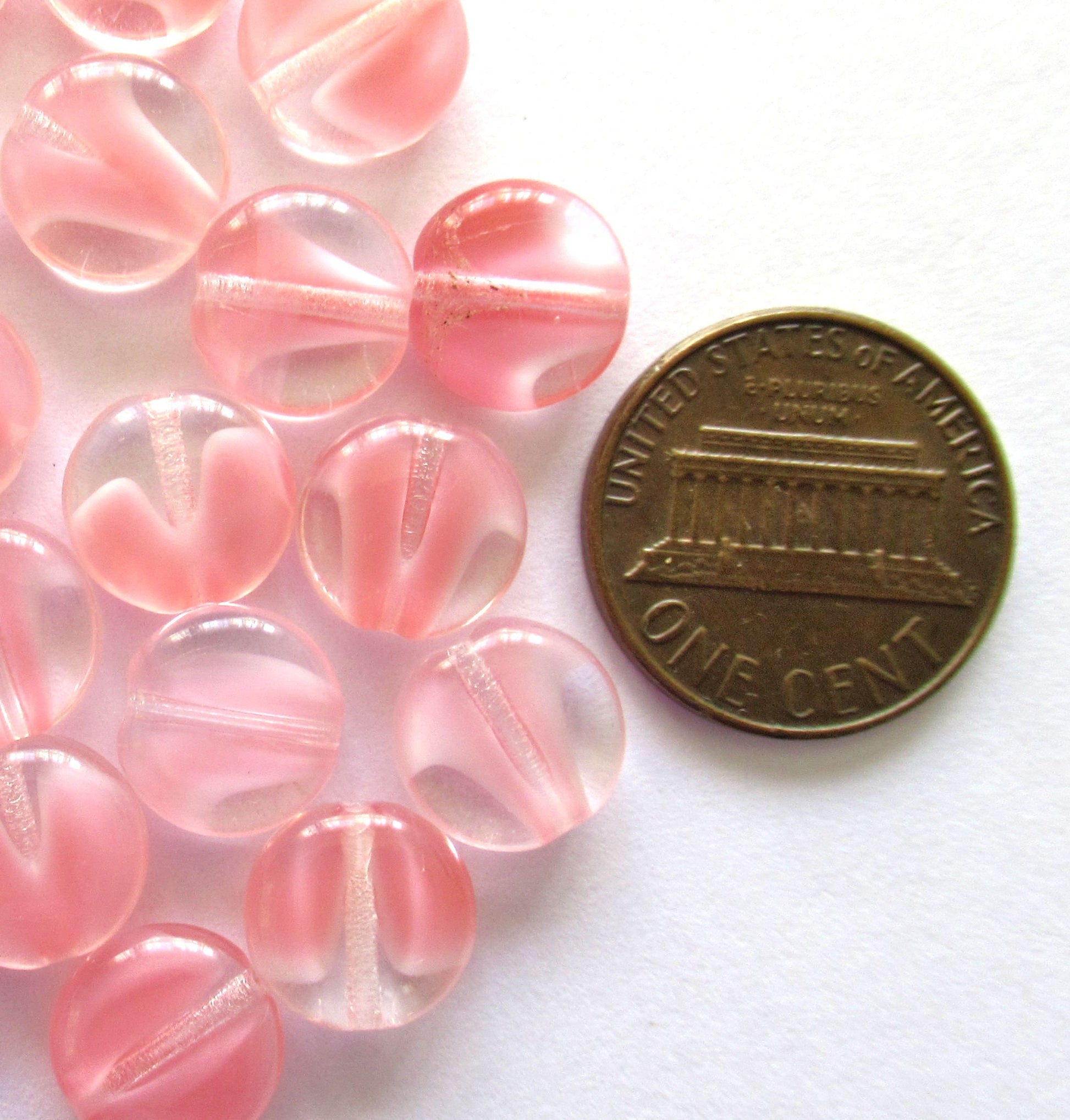 20 Czech glass coin beads - 10mm pink & crystal mix disc beads C00011