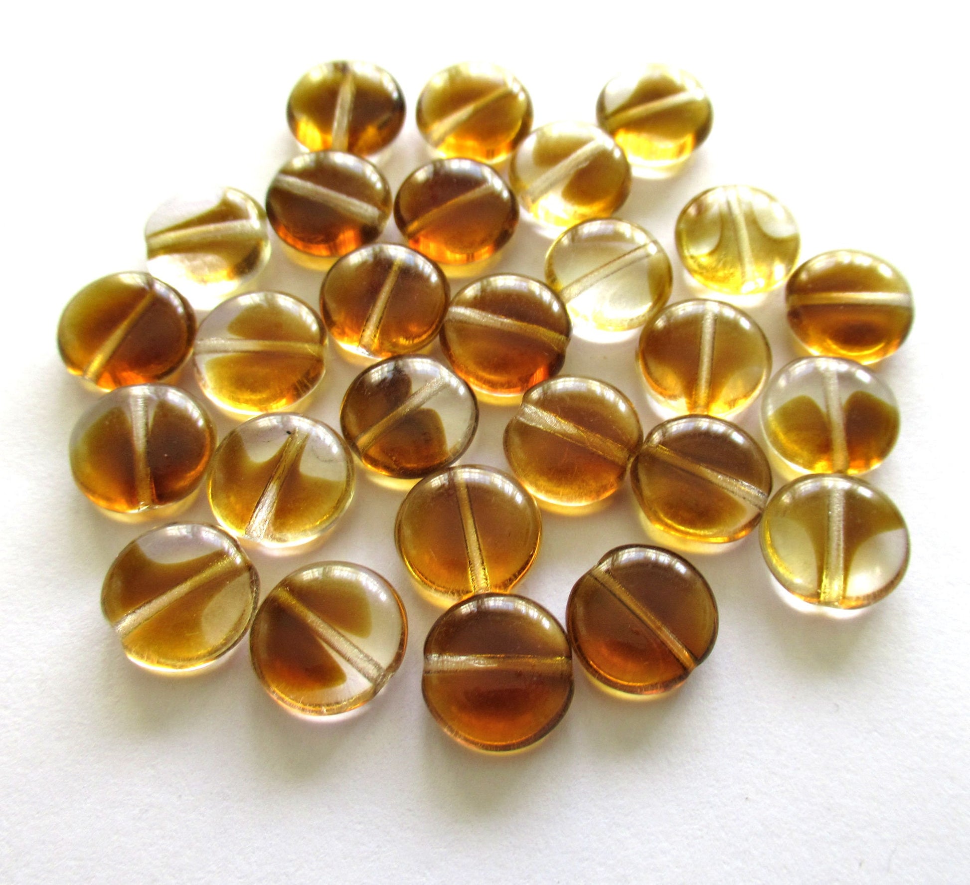 20 Czech glass coin beads - 10mm topaz brown & crystal mix disc beads C00011