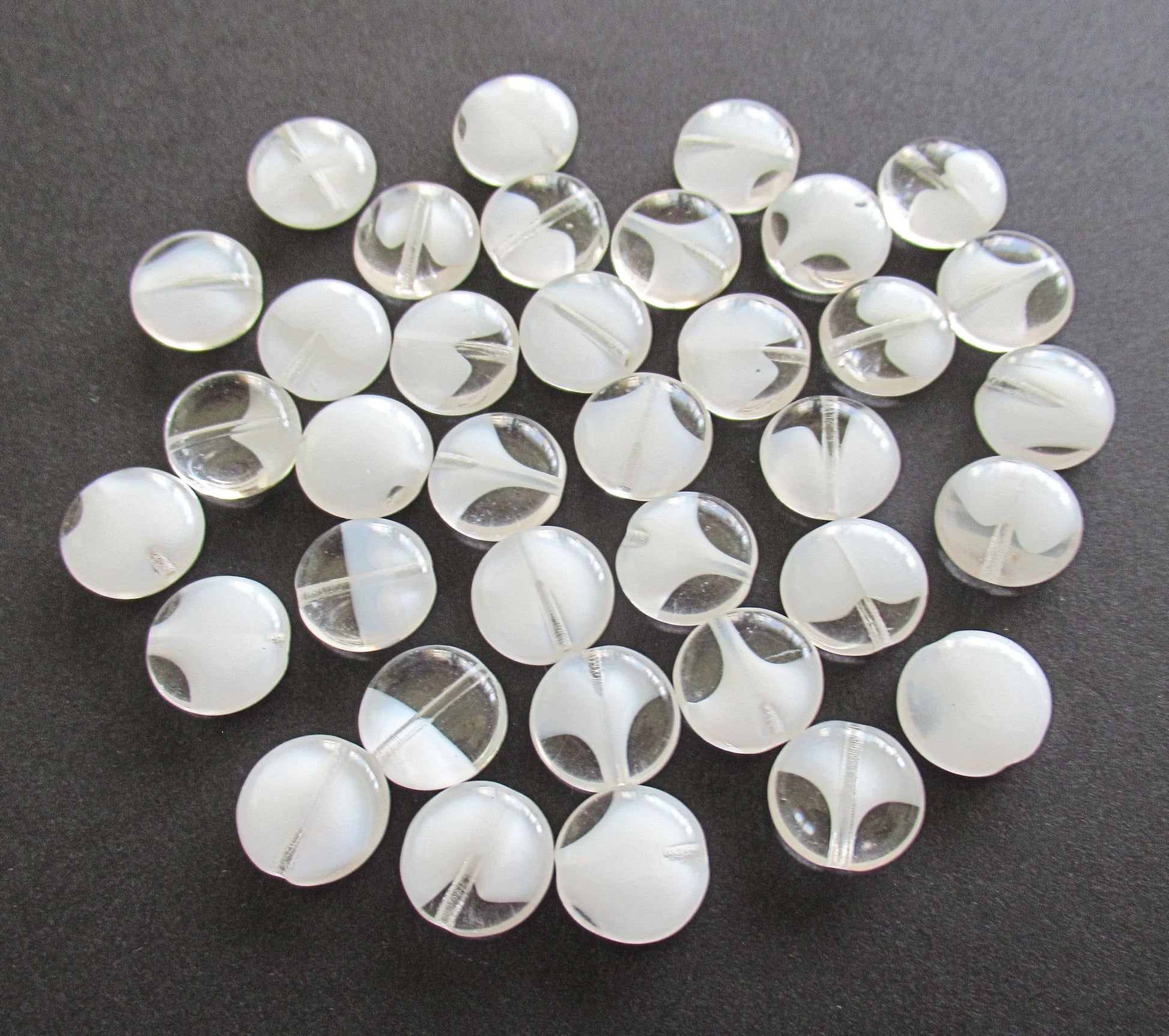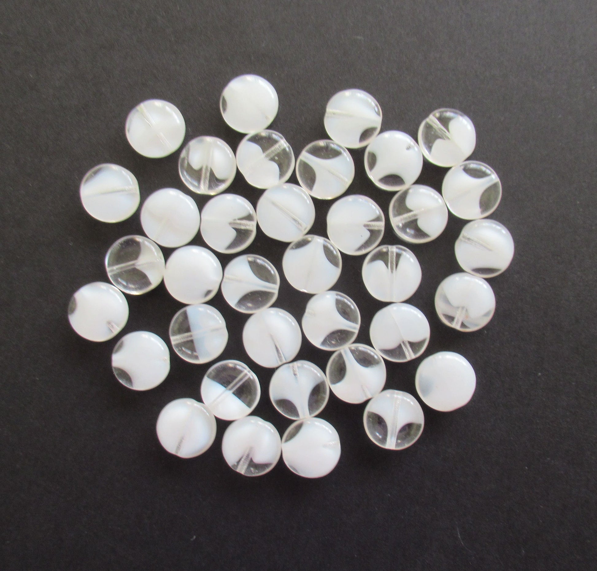 20 Czech glass coin beads - 10mm white & crystal mix disc beads C0038
