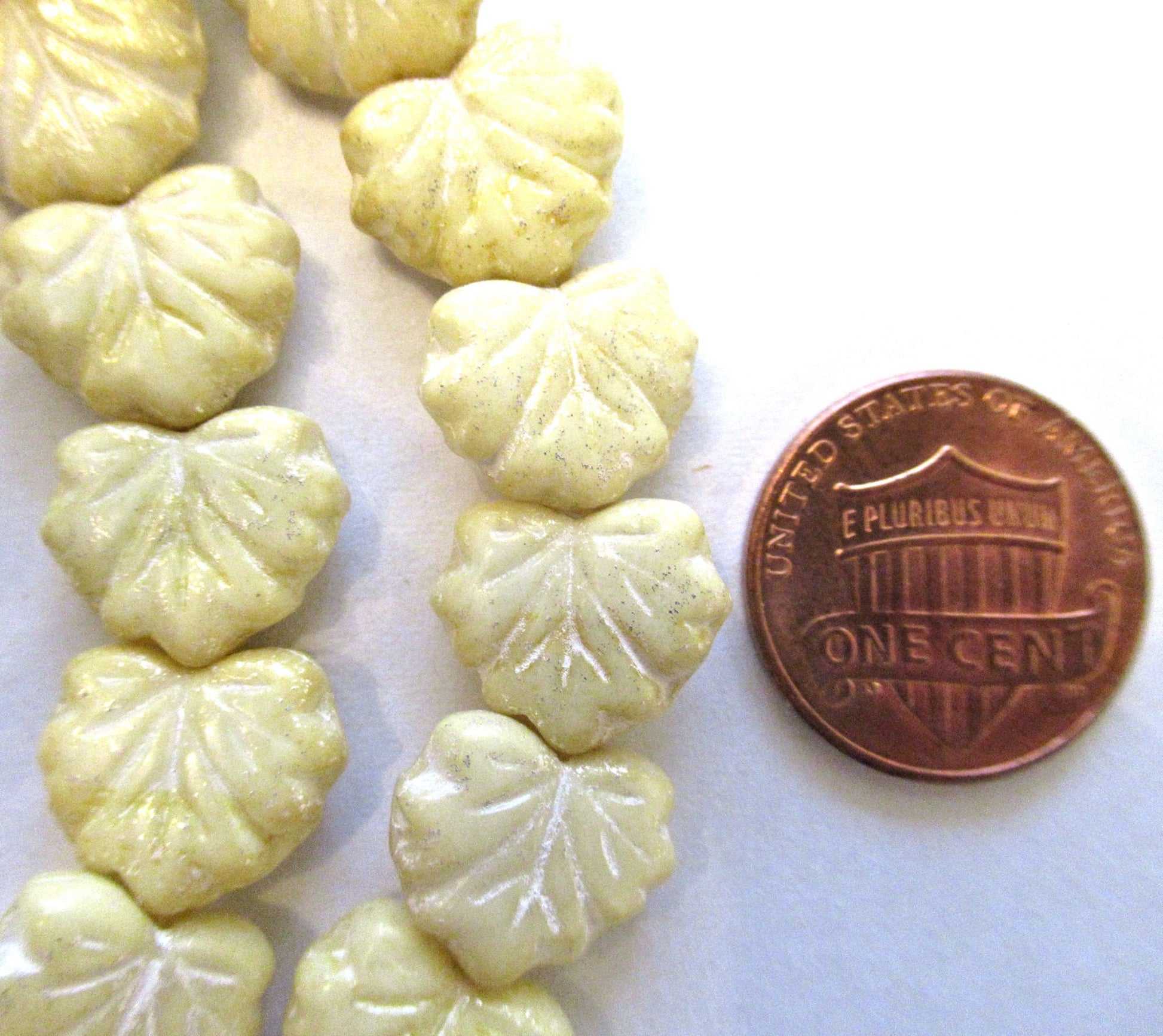 20 Czech glass maple leaf beads - opaque off white leaves with a subtle white wash - center drilled 13 x 11mm beads C00571