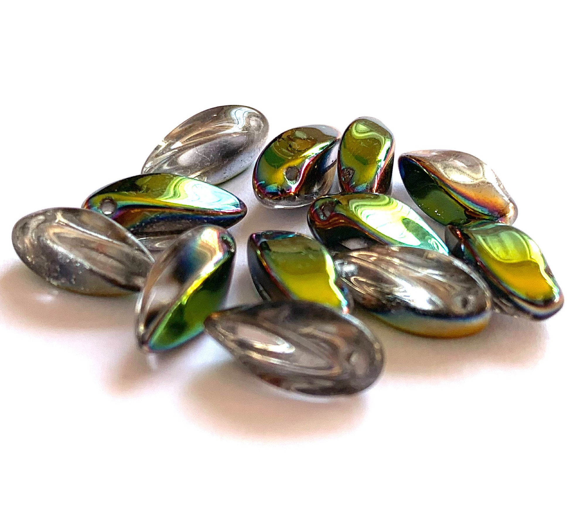 20 Czech glass twisted teardrop, petal or dagger beads - top drilled 6 x 12mm crystal vitrail pressed glass beads C0821