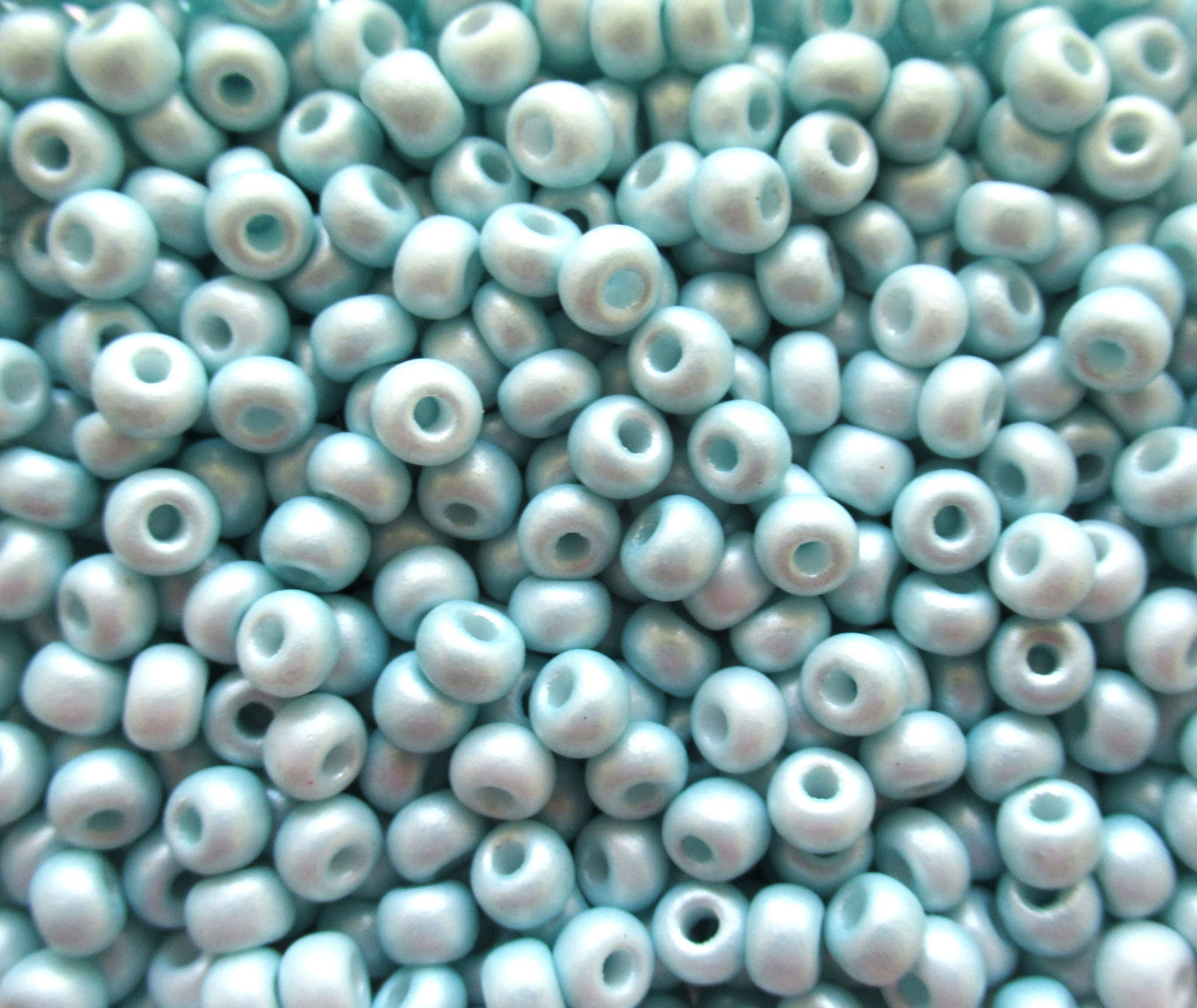 24 grams 6/0 Czech glass Preciosa rocaille seed beads - opaque matte ice blue pearl 4mm spacer beads - C00801