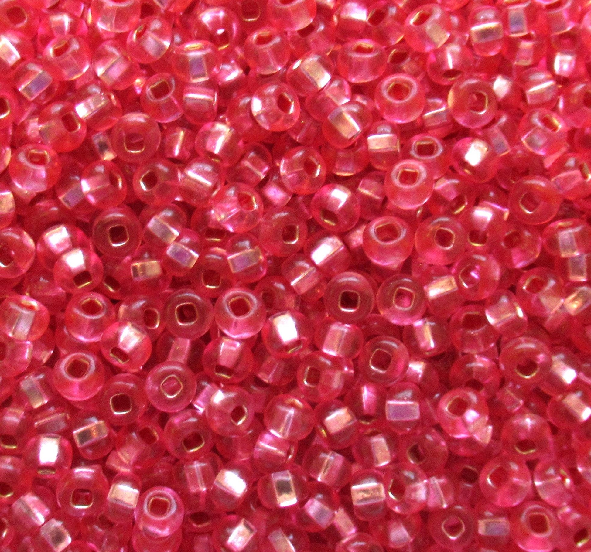 24 grams Czech glass Preciosa Rocaille 6/0 seed beads - transparent pink silver lined bead - size 6 seed beads - 4mm spacer beads - C00431