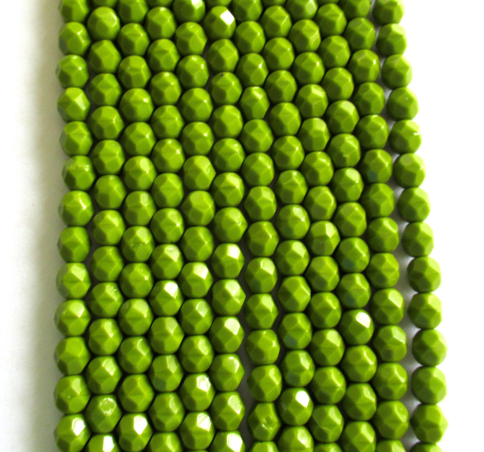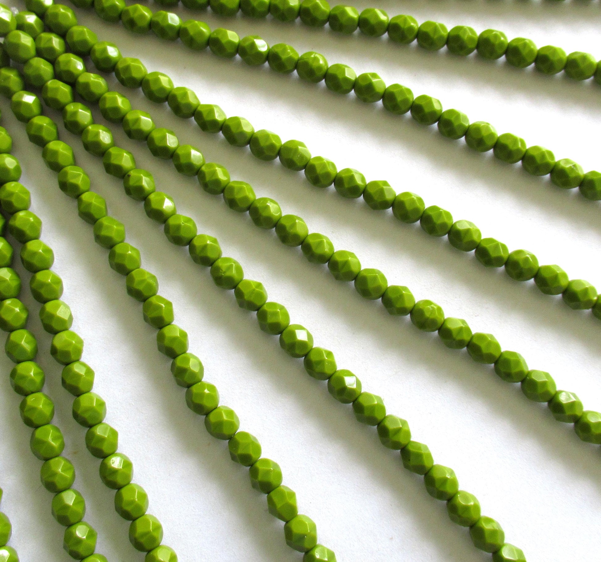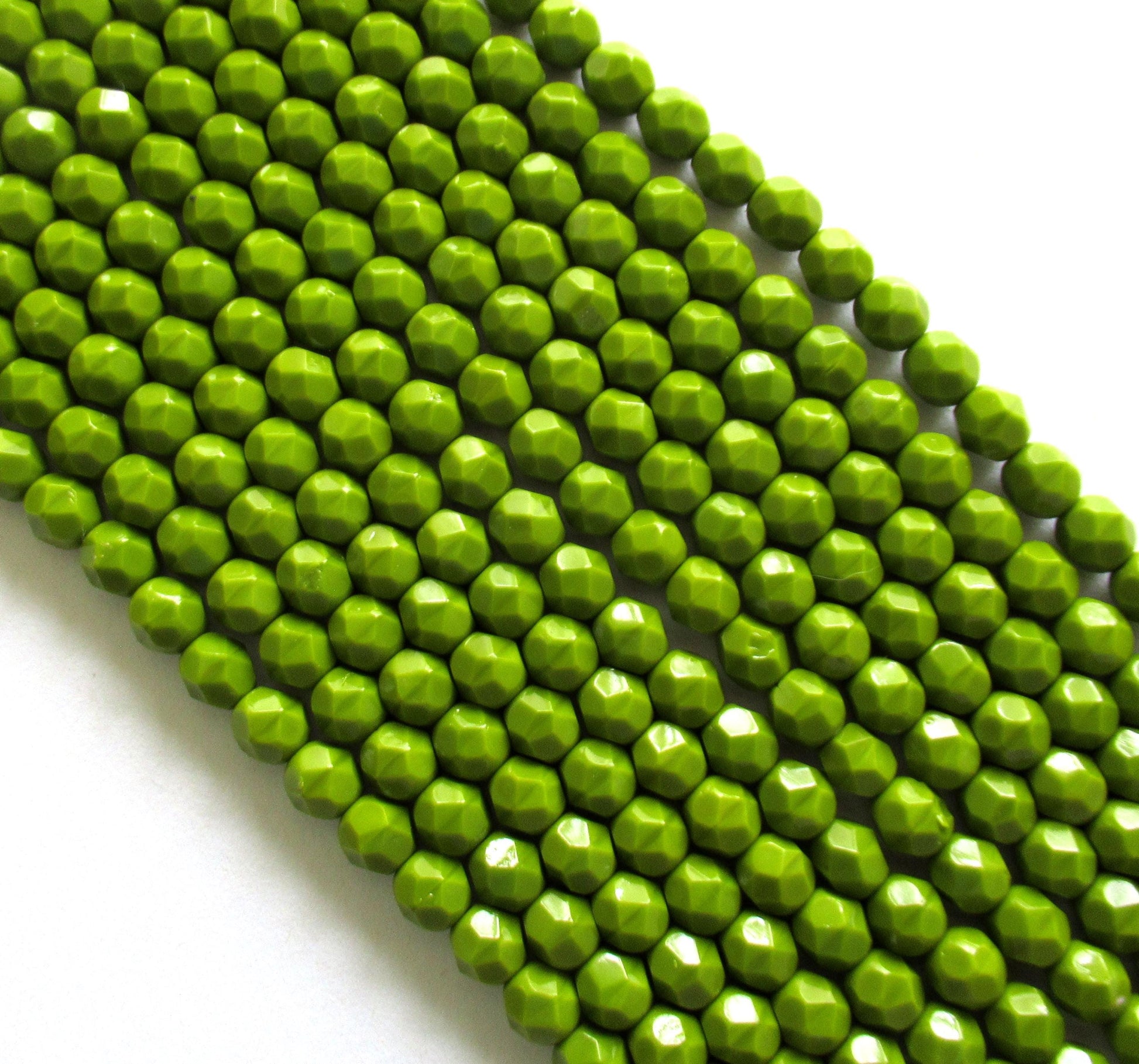 25 6mm Czech glass beads - opaque olive green or olivine beads - fire polished faceted round beads - C0036