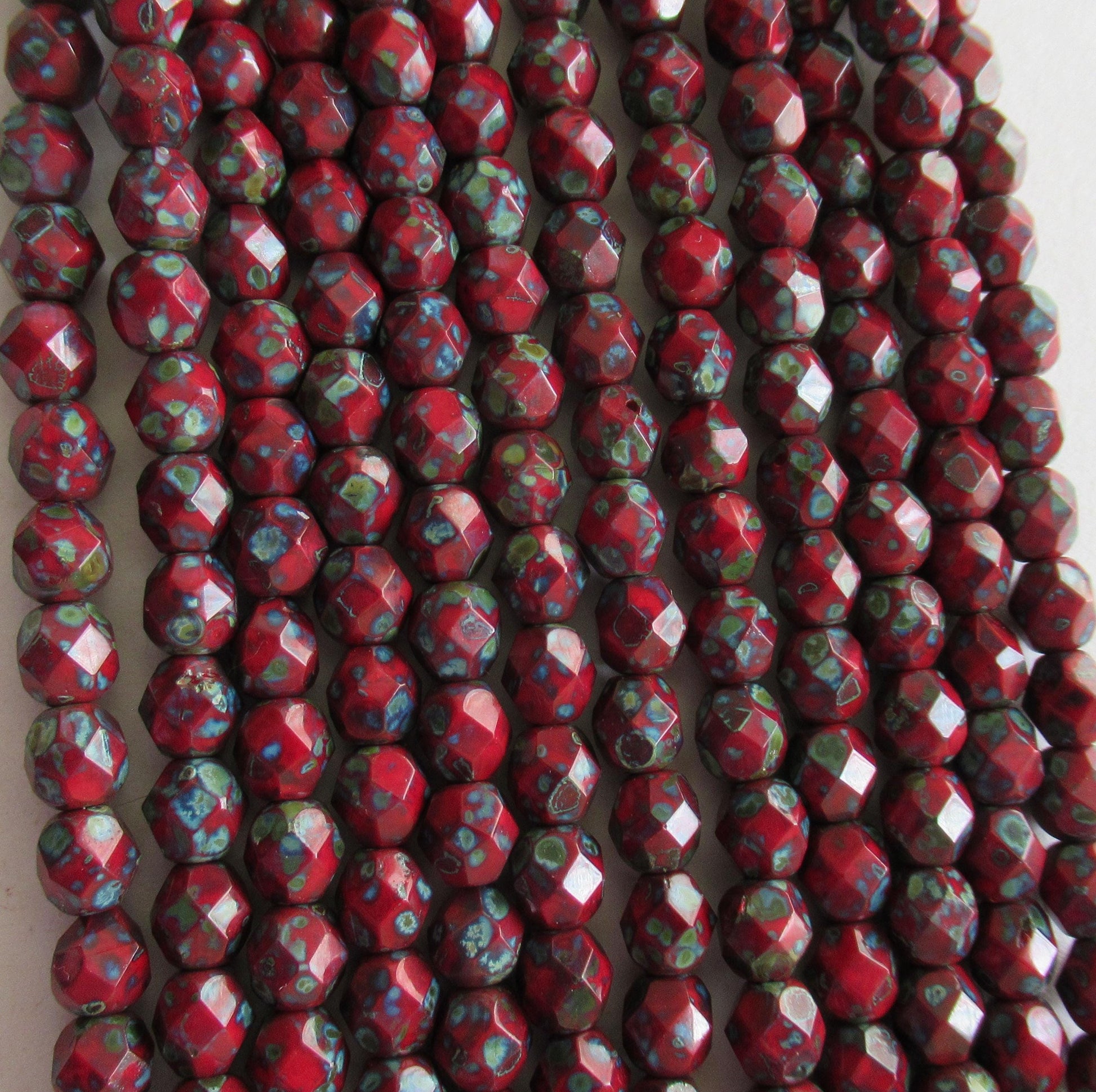 25 6mm - Czech glass faceted beads - opaque red w/ full picasso coat - earthy - rustic - fire polished - round beads C0065