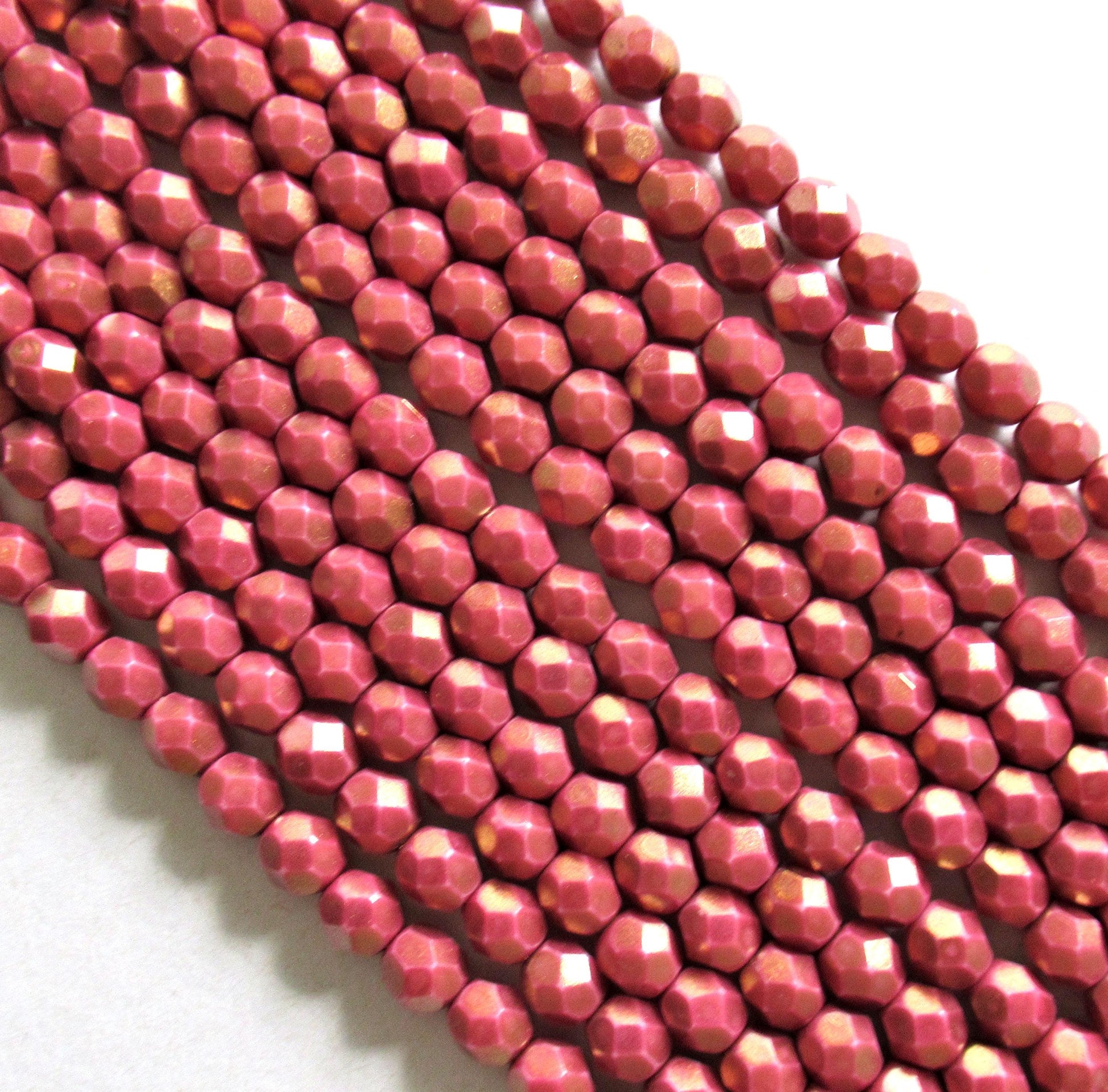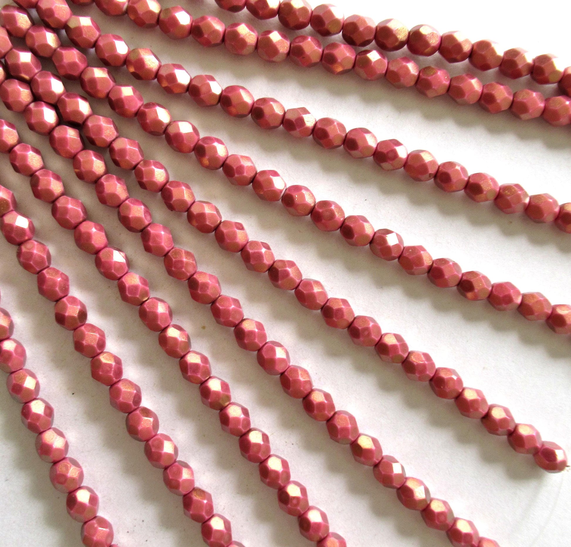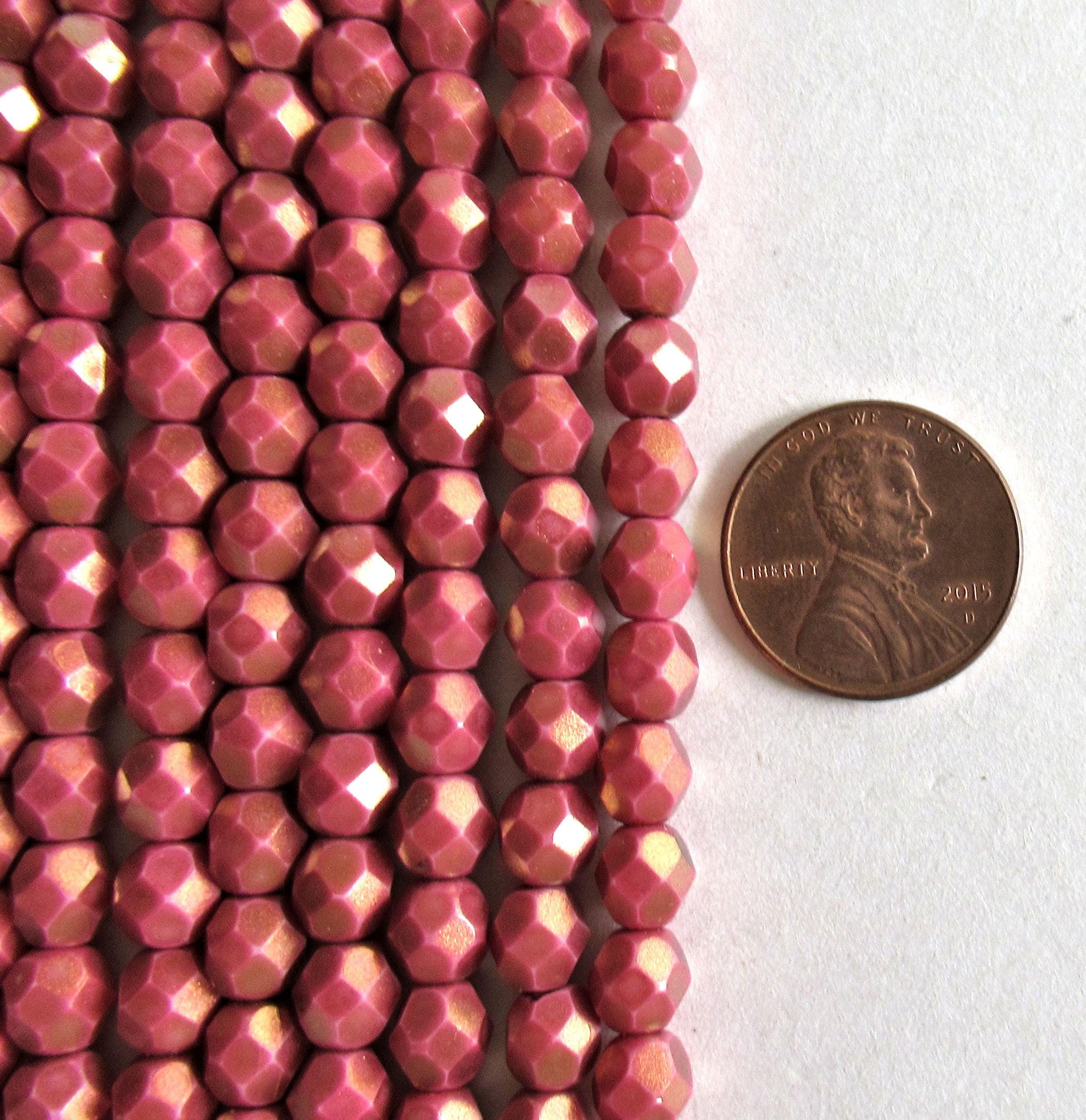 25 6mm Halo Ethereal Cherub Czech glass beads - opaque pink beads with a shiny gold finish - fire polished faceted round beads - C0086