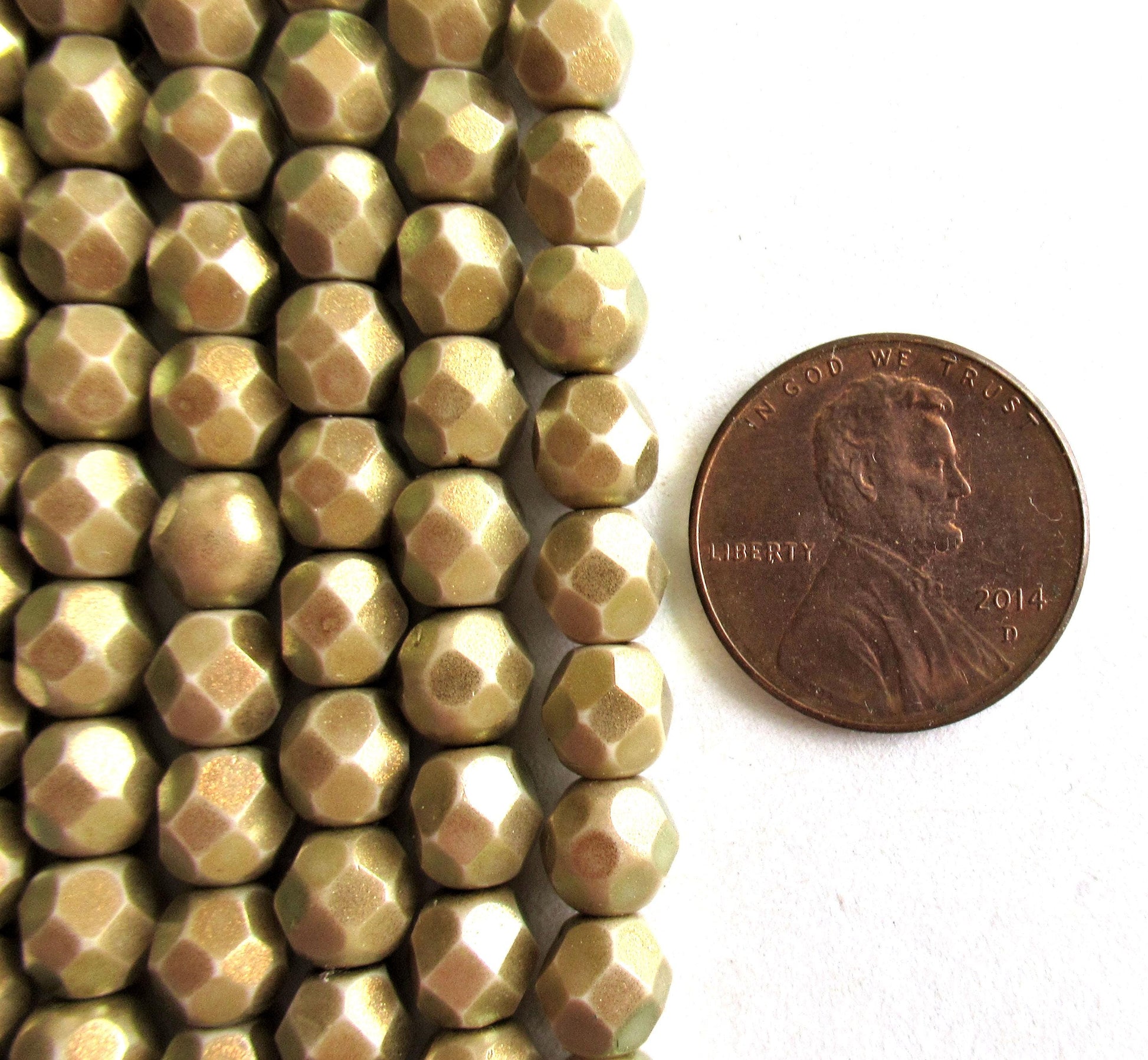 25 6mm Halo Ethereal Linen Czech glass beads - opaque neutral khaki beads - faceted fire polished round beads C0006