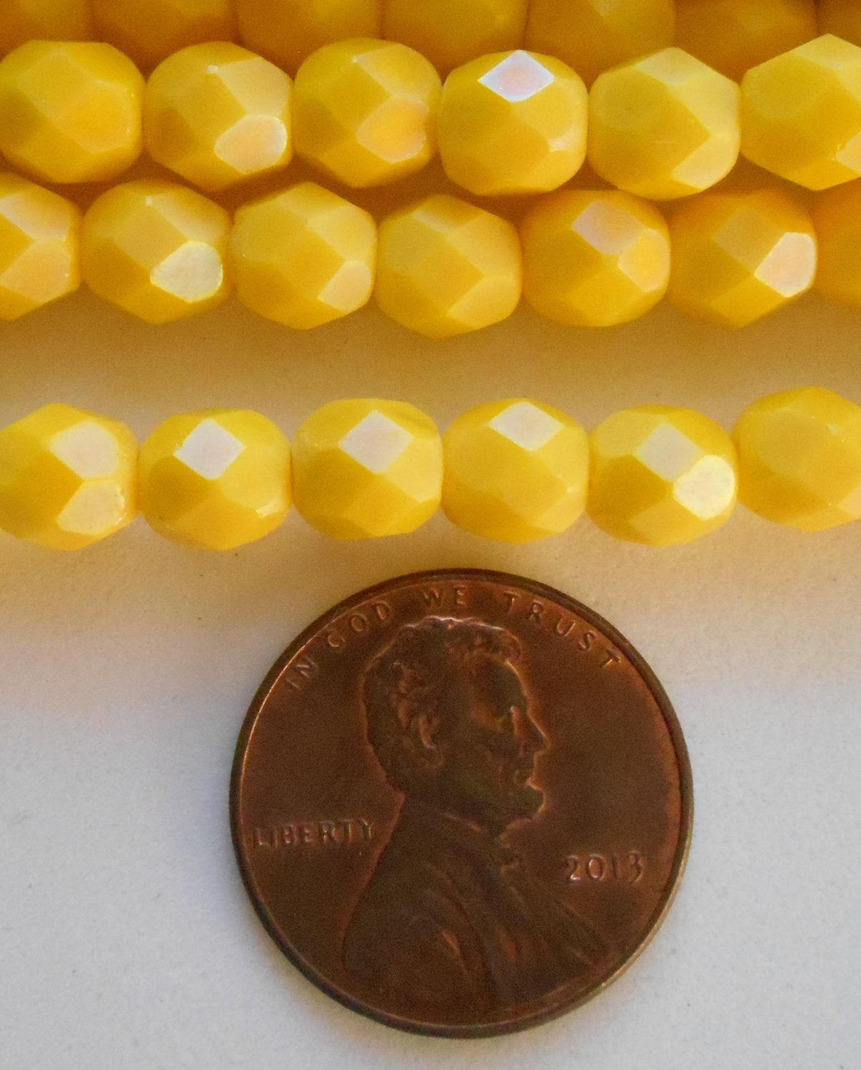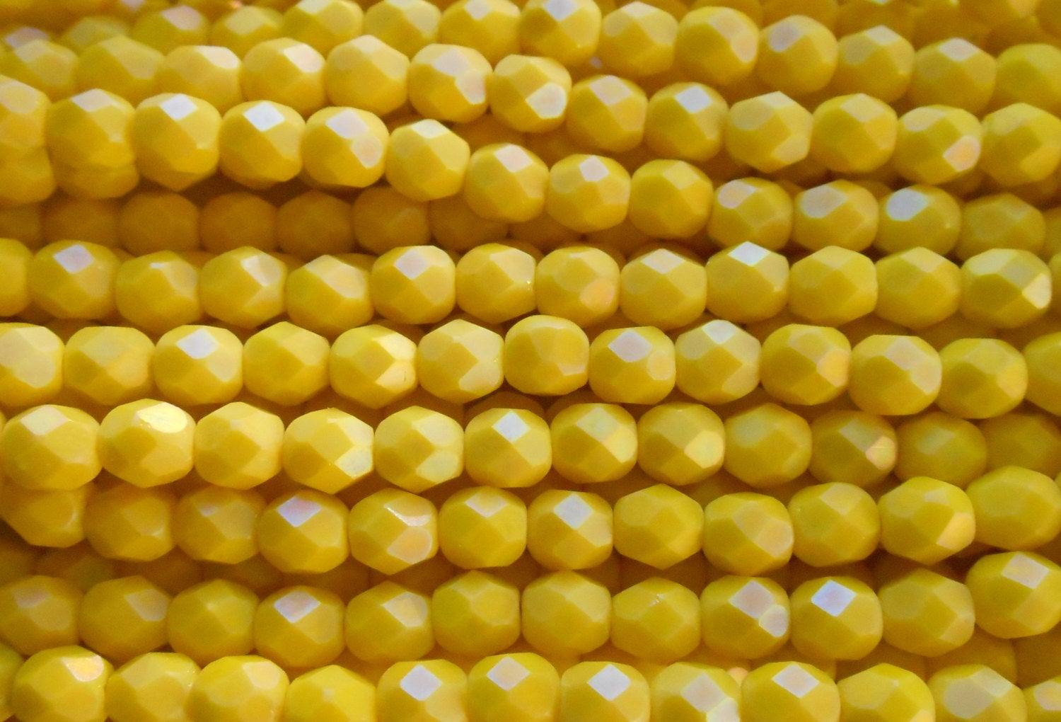 This is a set of 25 6mm Matte Luster Iris Custard Yellow glass beads, Opaque bright yellow fire polished faceted round glass beads. These beads are a beautiful color and they will stand out in any project!