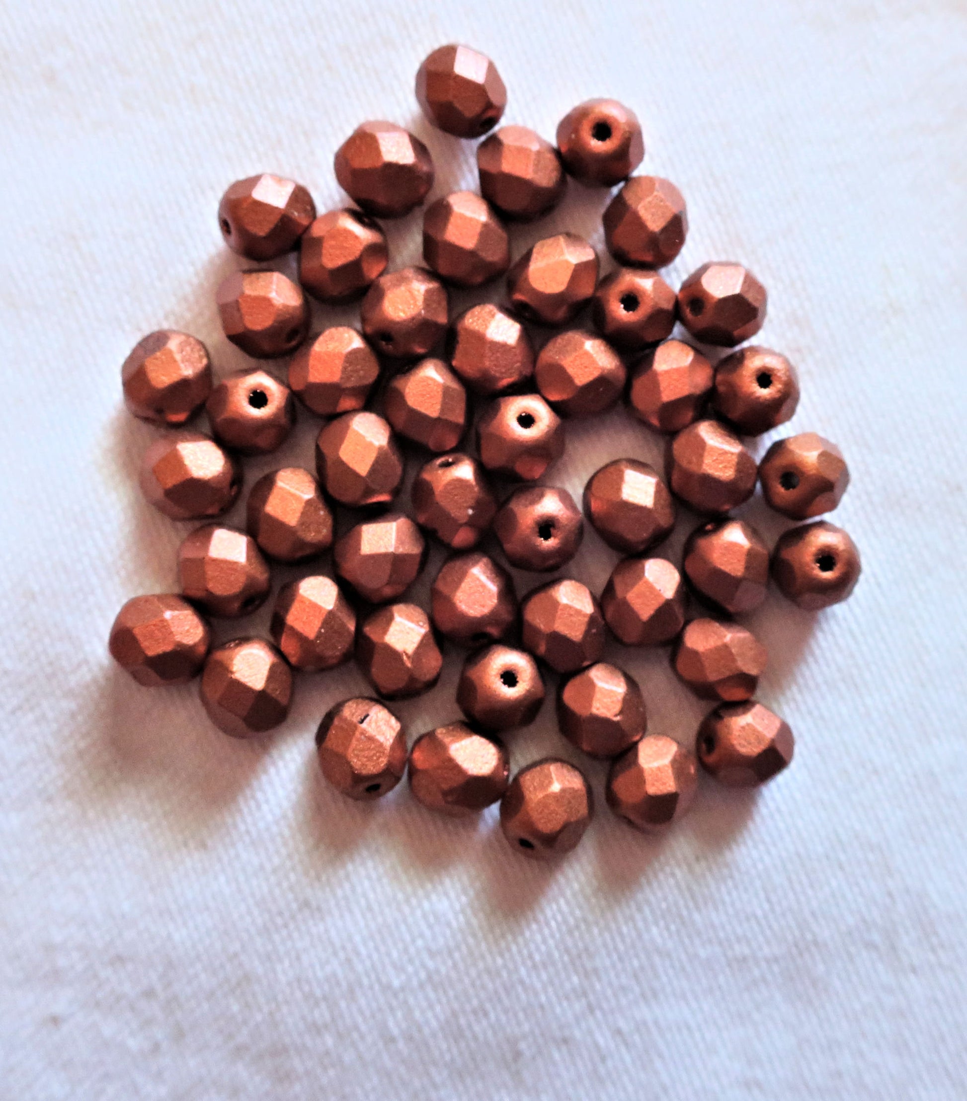25 6mm Matte Metallic Antique Copper Czech glass beads - fire polished, faceted round beads, C2525