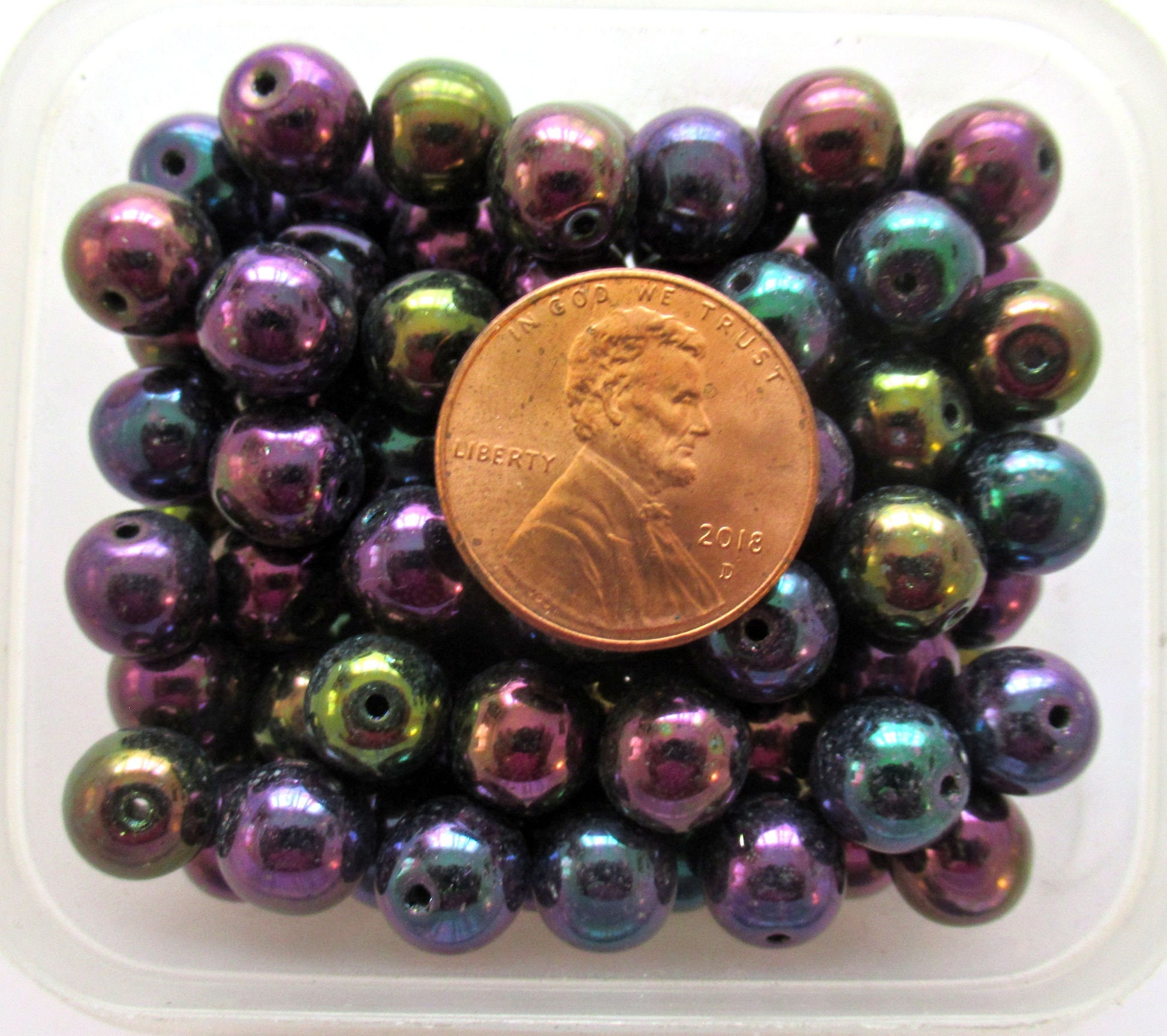25 8mm Czech glass druk beads - Purple Iris smooth round druk beads C0003