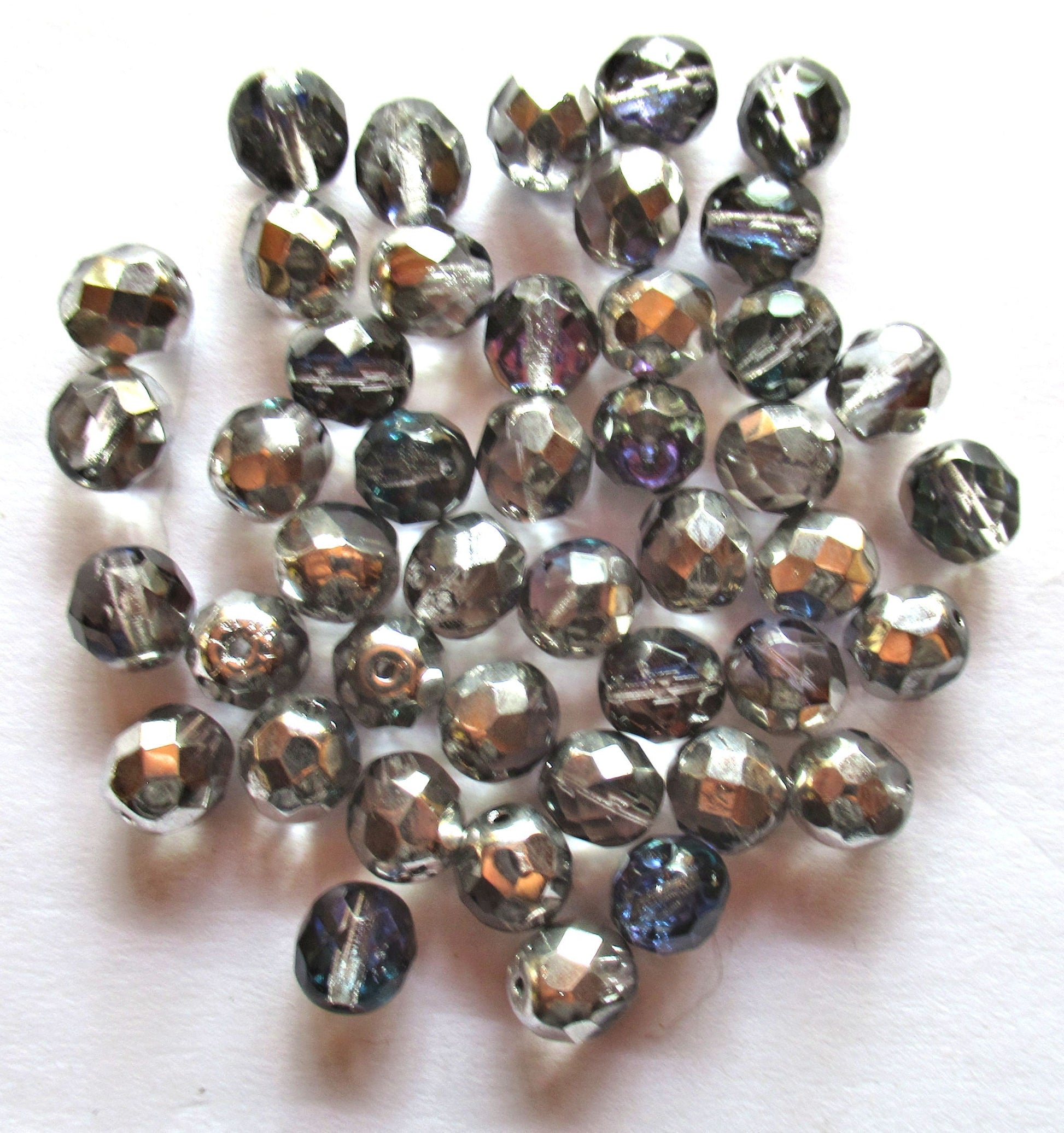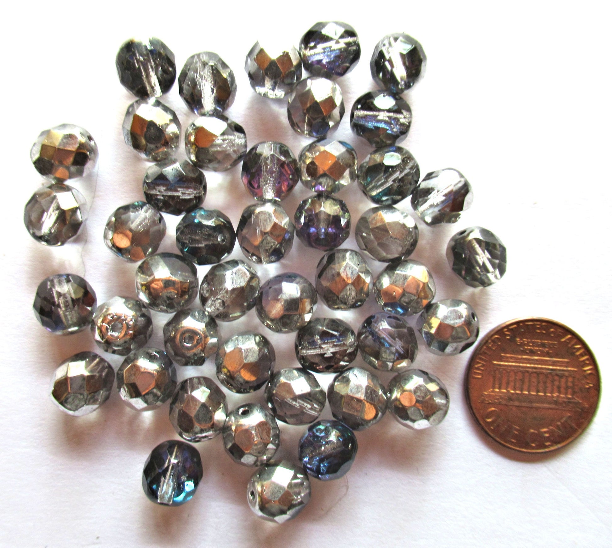 25 8mm Czech glass heliotrope beads - faceted fire polished round crystal, silver and lilac beads C0086