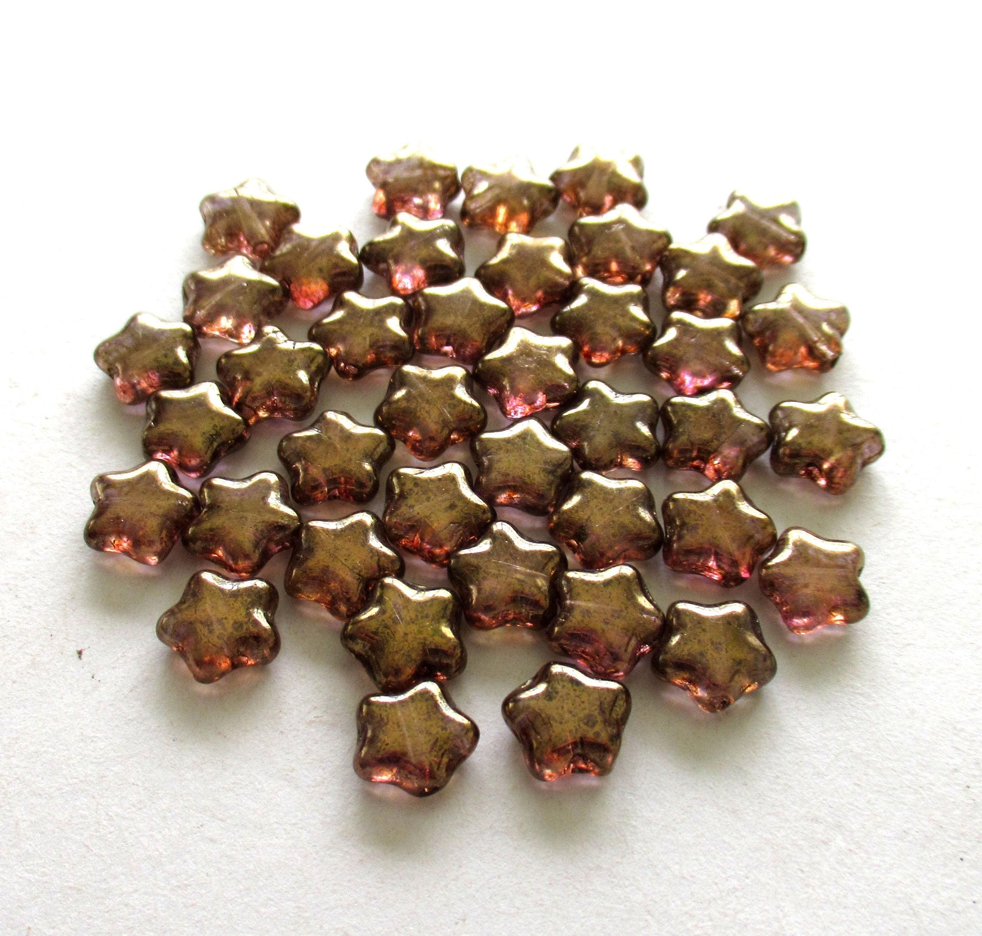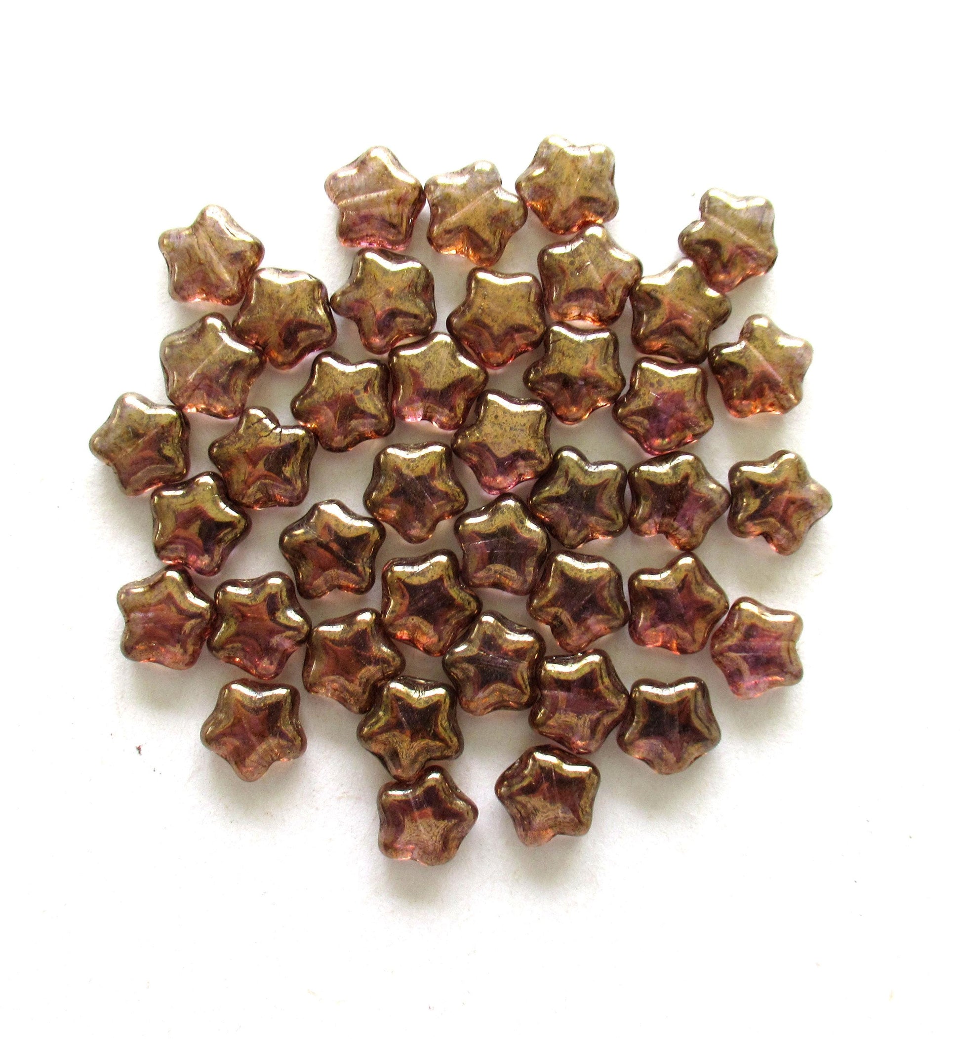 25 8mm Czech glass star beads - iridescent lumi brown pressed glass beads - C0067