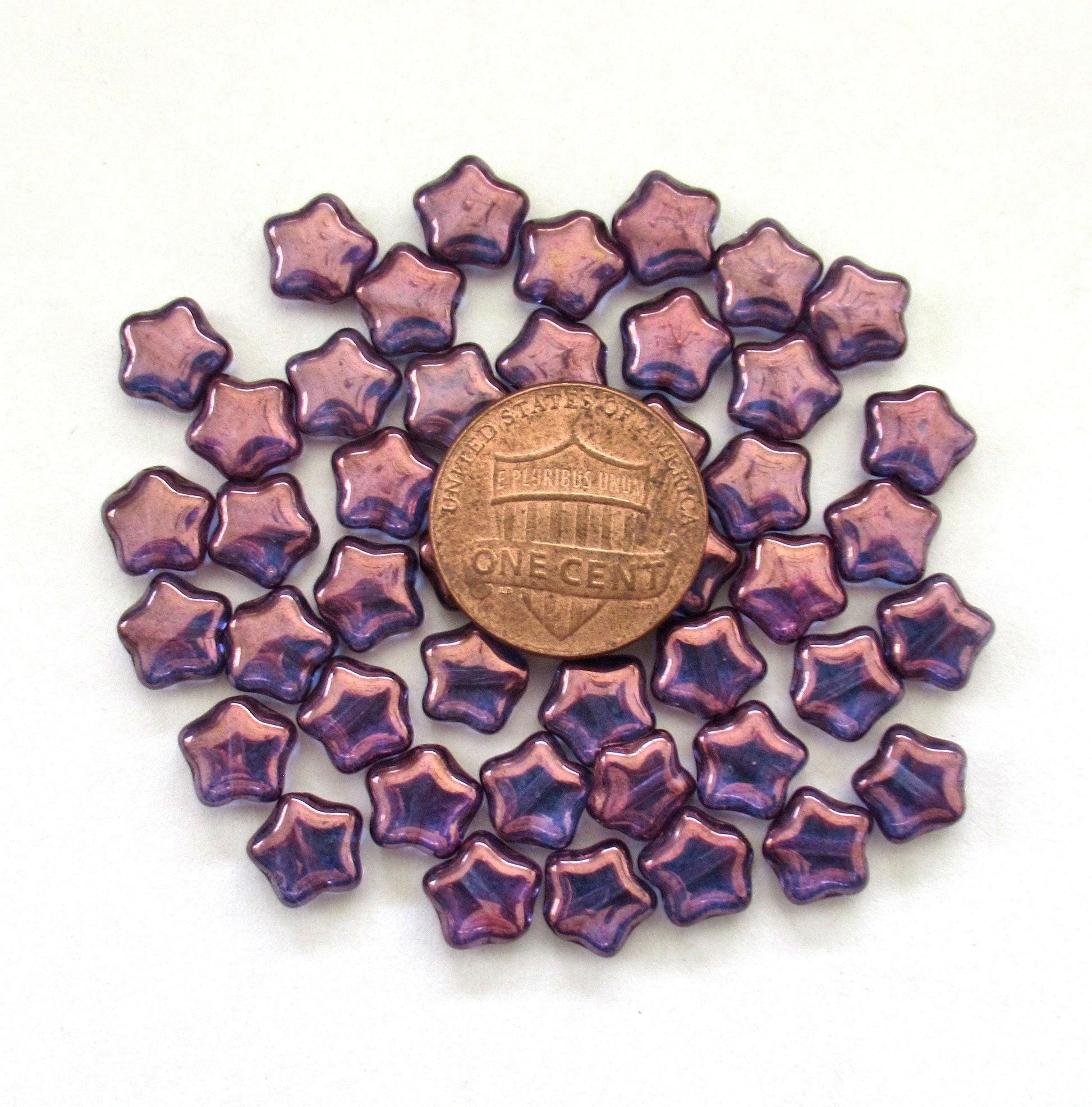 25 8mm small Czech glass star beads - lumi amethyst purple luster pressed glass beads - C0067