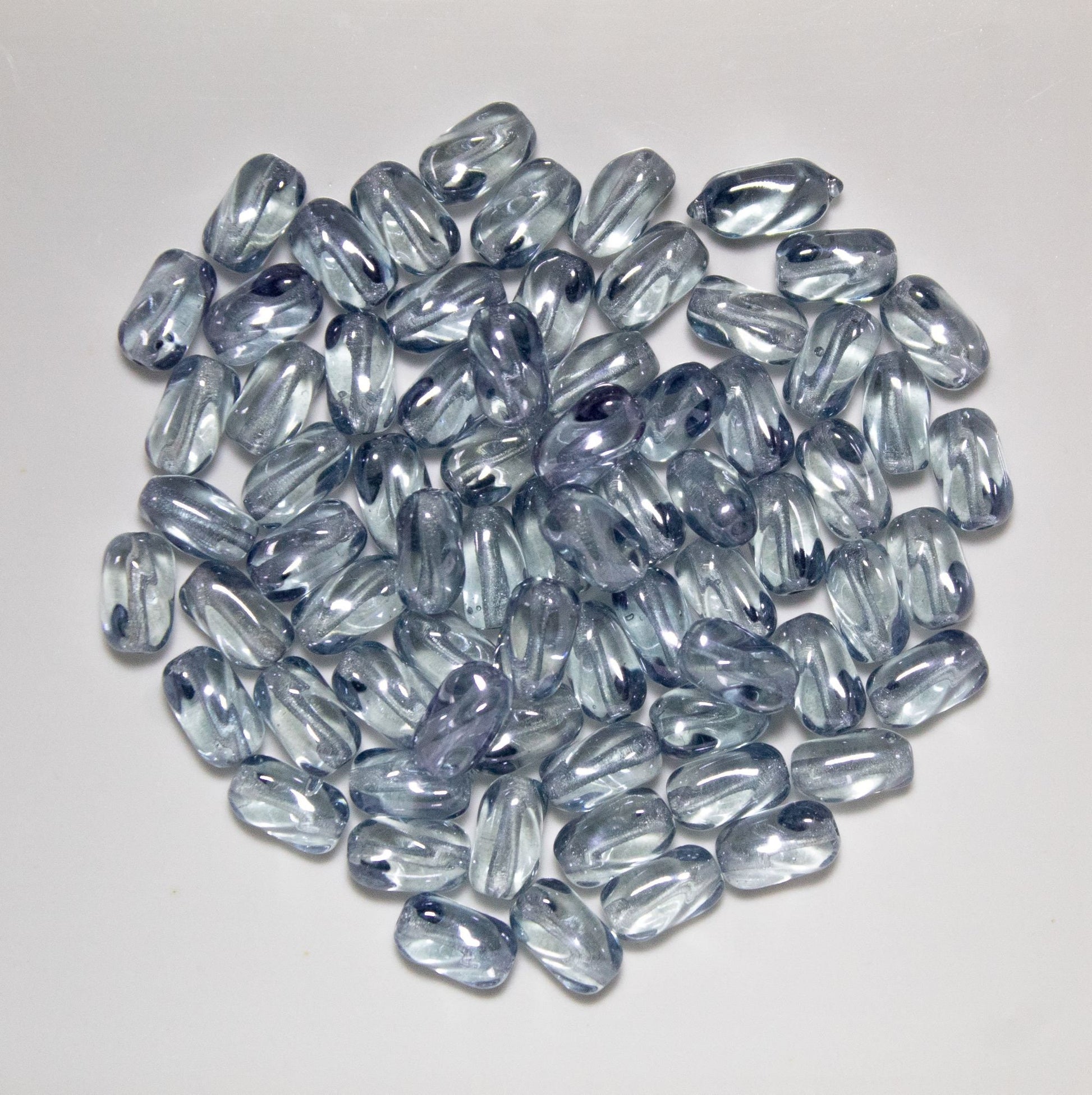 25 9mm x 6mm Lumi Blue Czech glass twisted oval beads C0044