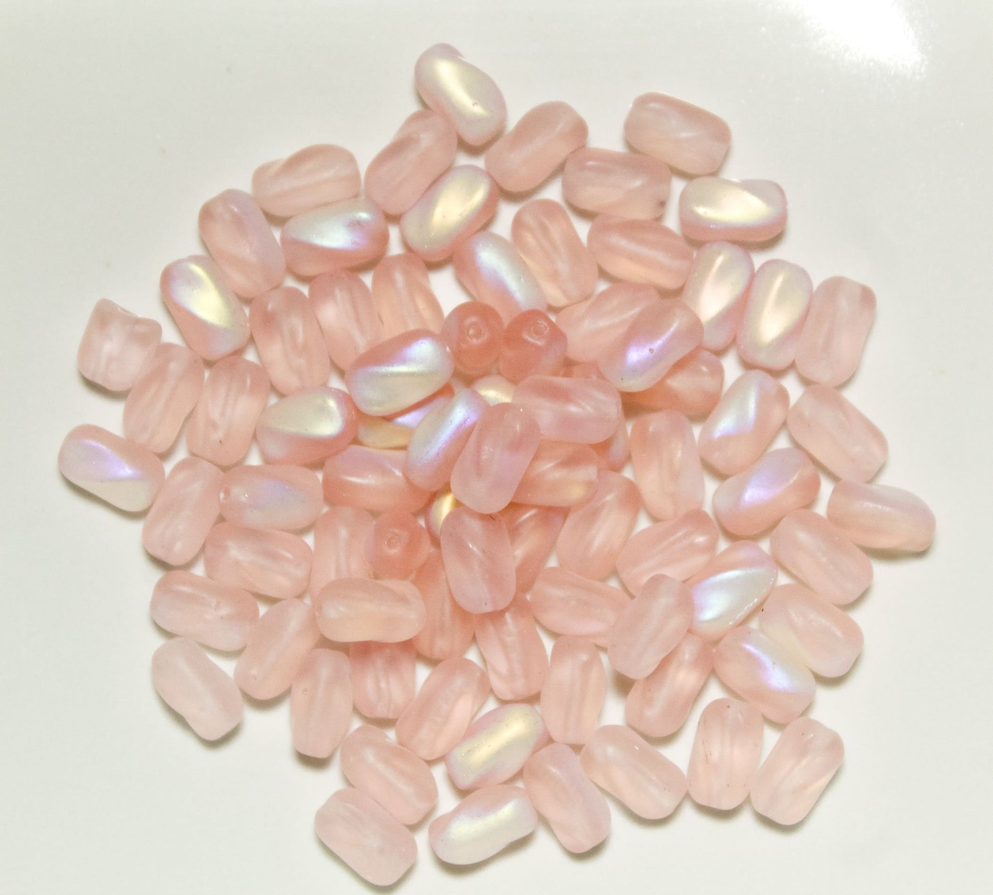 25 9mm x 6mm Matte Pink Czech glass twisted oval beads C0024