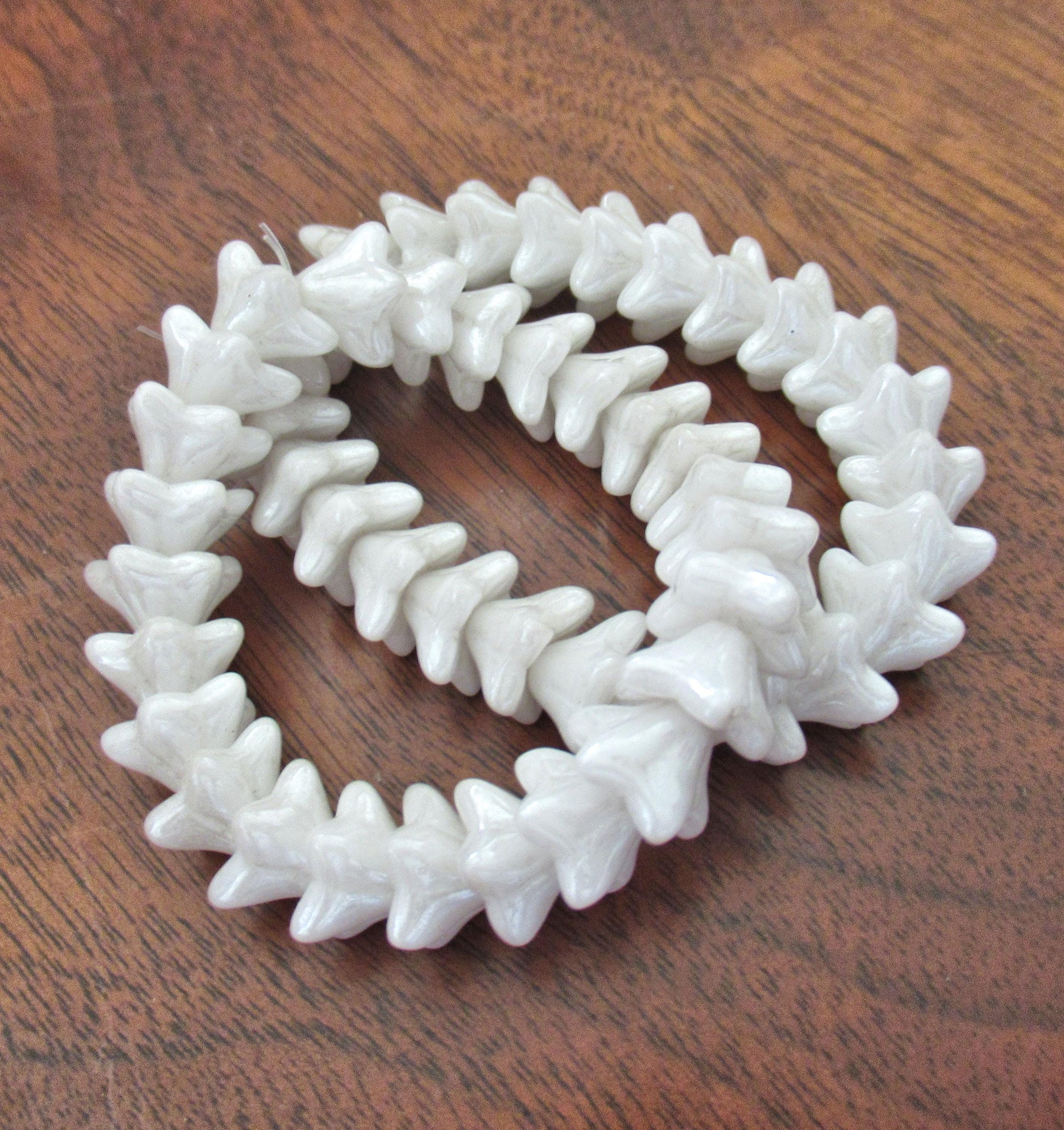 25 Czech glass bell flower beads- 9 x 6mm - opaque white luster pressed glass beads - C00381
