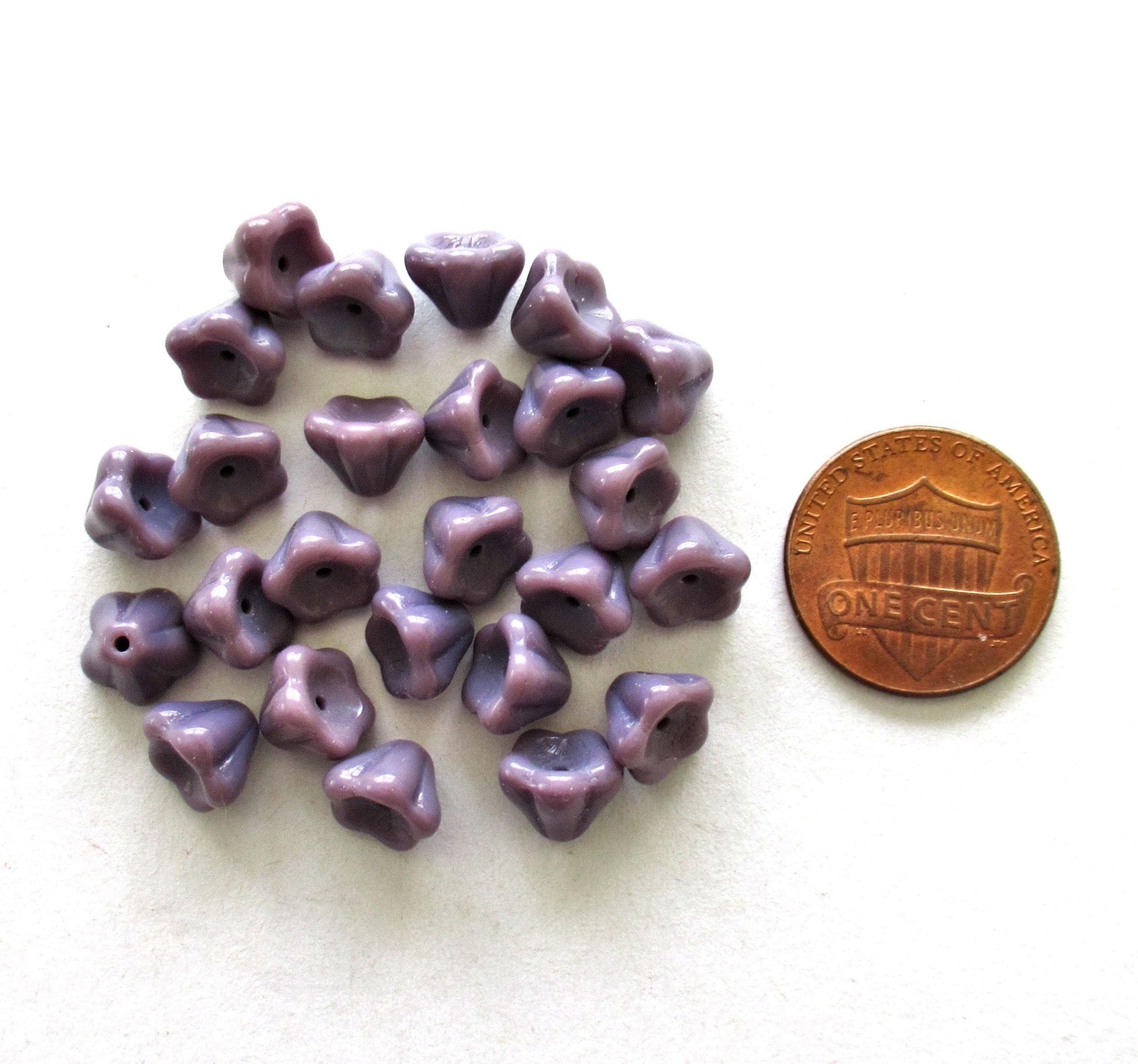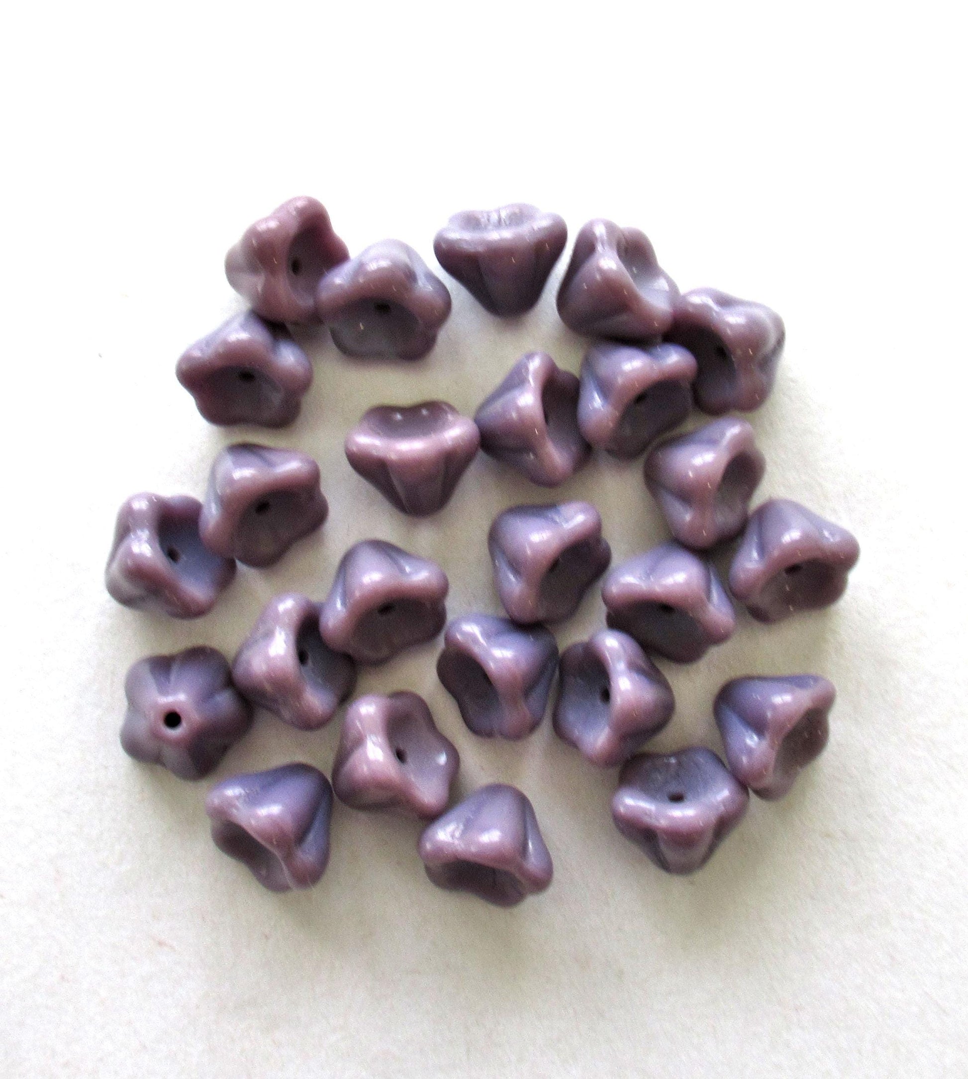 25 Czech glass bell flower beads - opaque purple pressed glass bellflower beads - 8 x 6mm - C00057