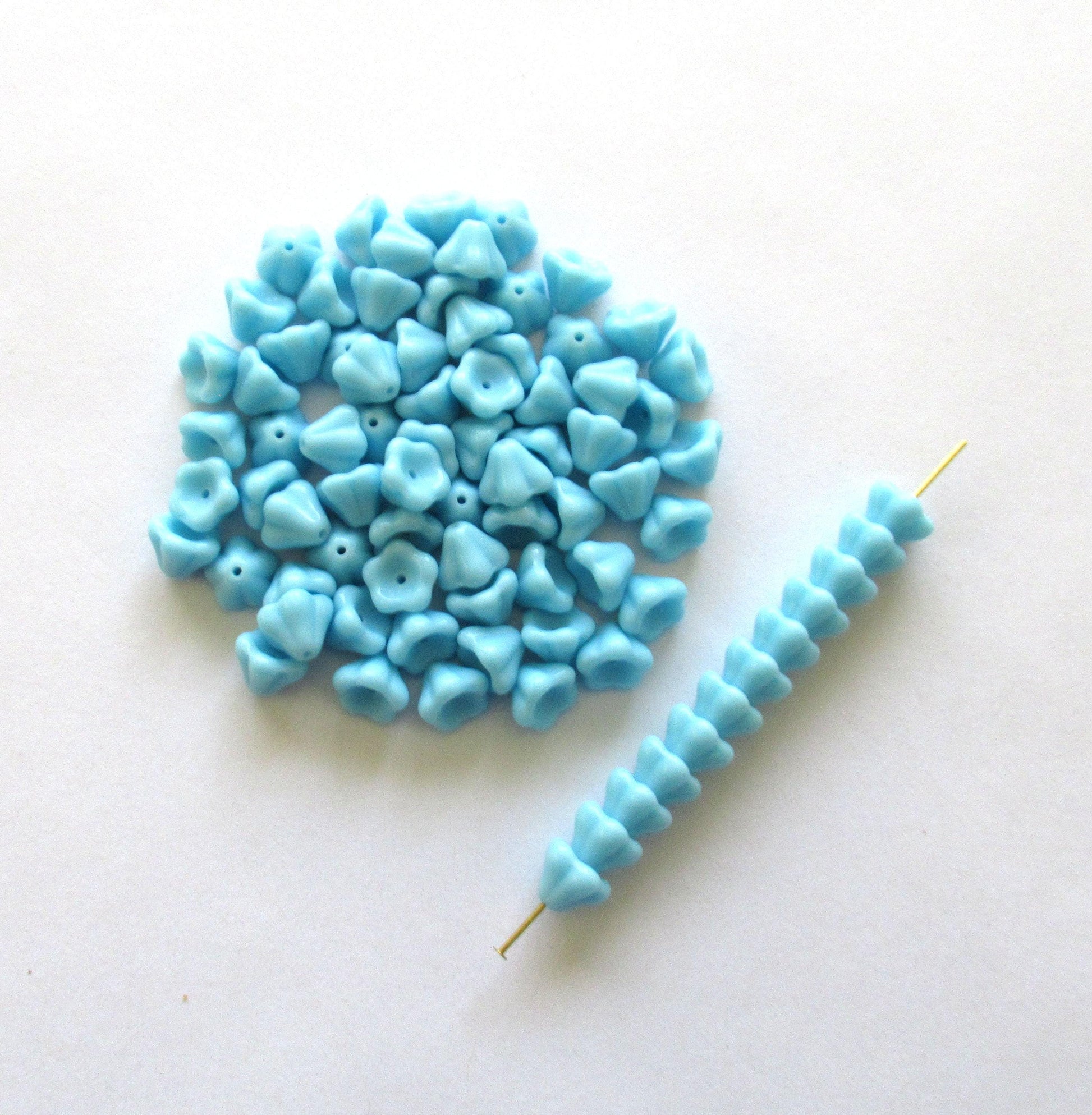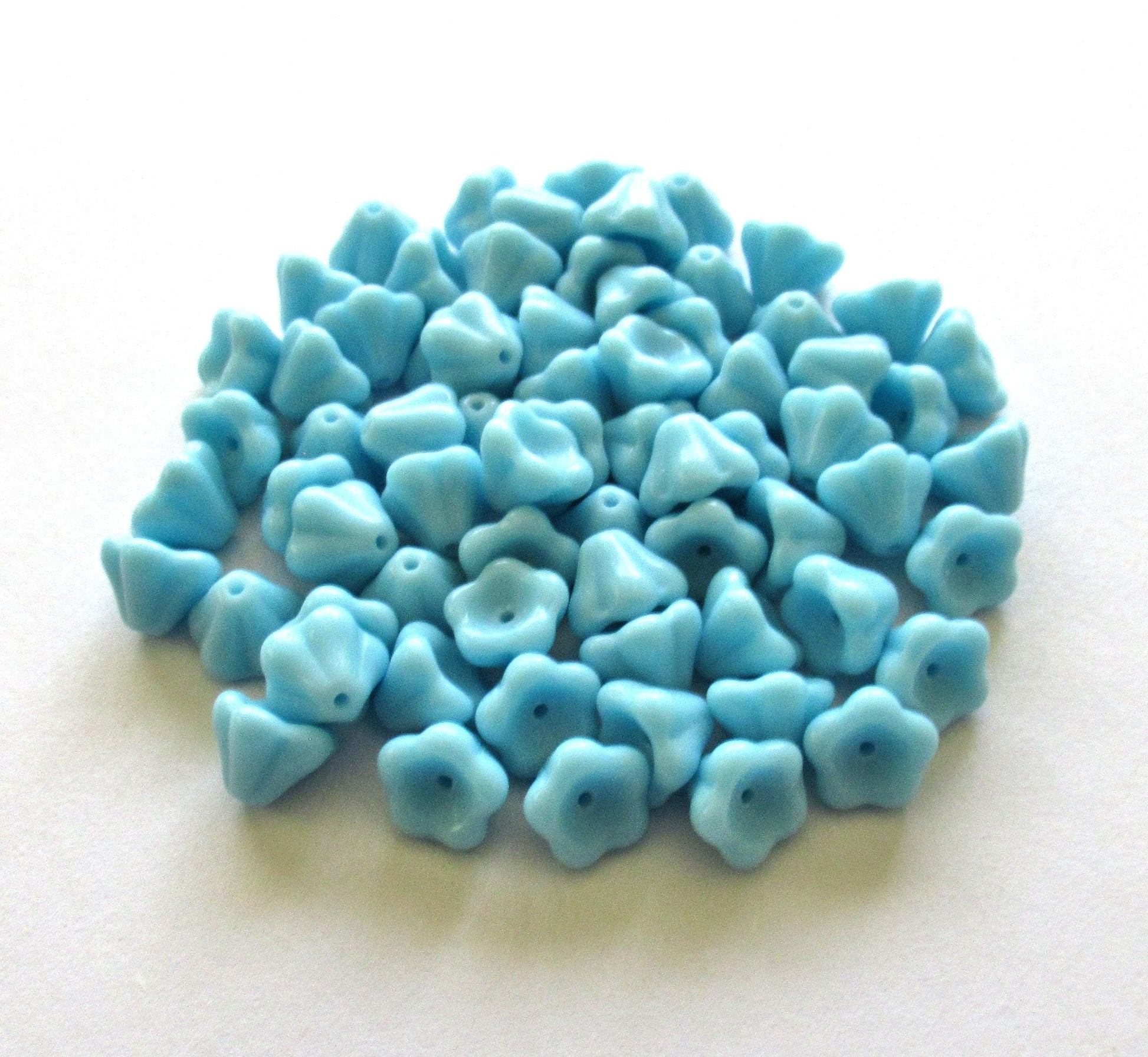 25 Czech glass Bell Flower beads - opaque turquoise blue pressed glass flower beads - 8 x 6mm - C00024
