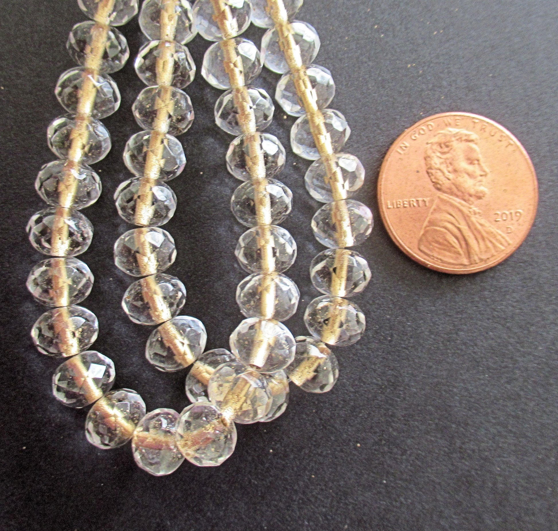 25 Czech glass puffy rondelle or donut beads - 5 x 7mm crystal clear gold lined beads - fire polished faceted rondelles 00031