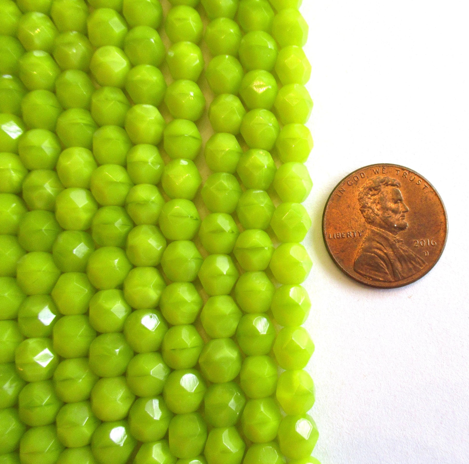 25 faceted round Czech glass beads - 6mm - chartreuse - bright yellow green - fire polished beads - C0017