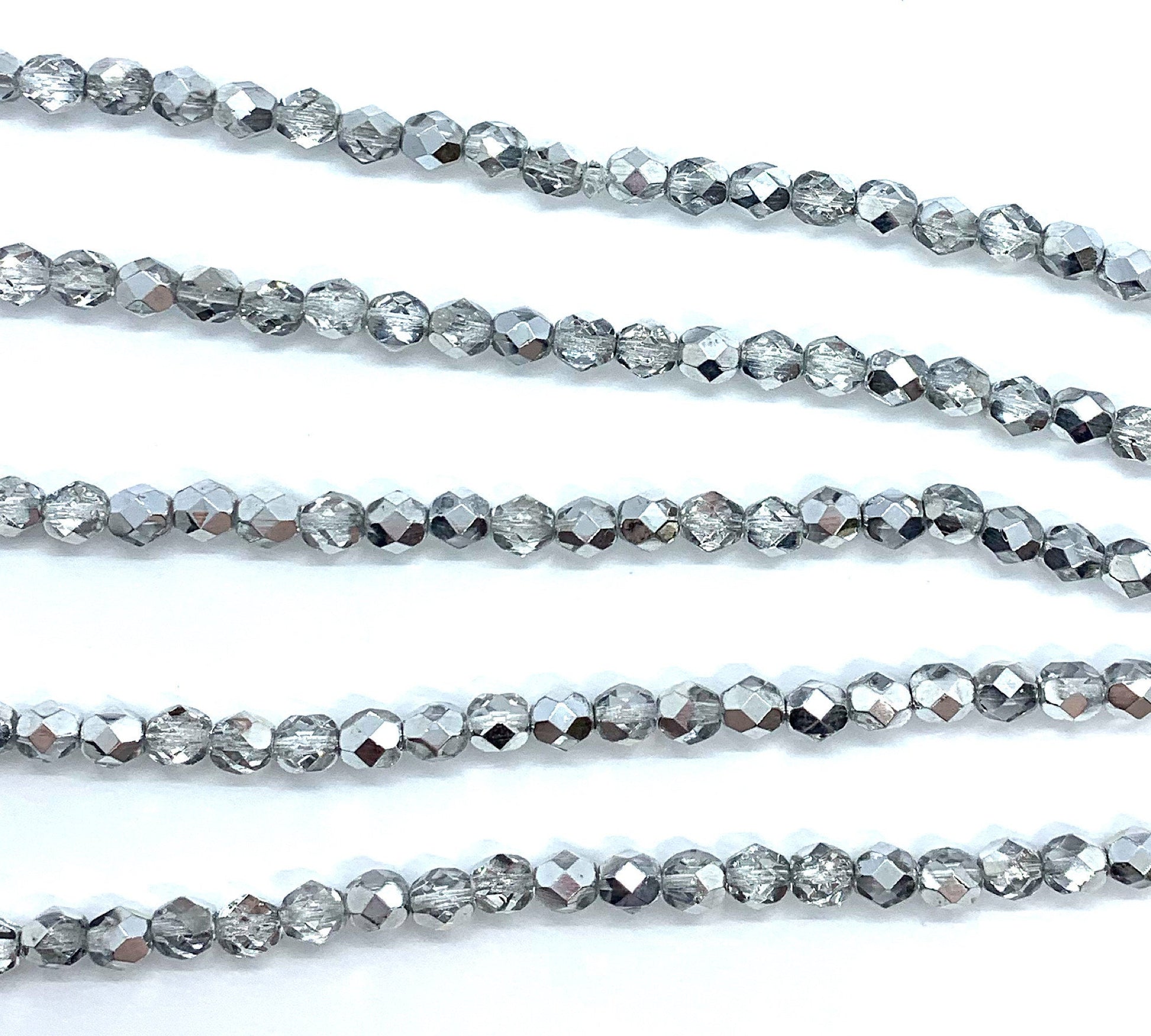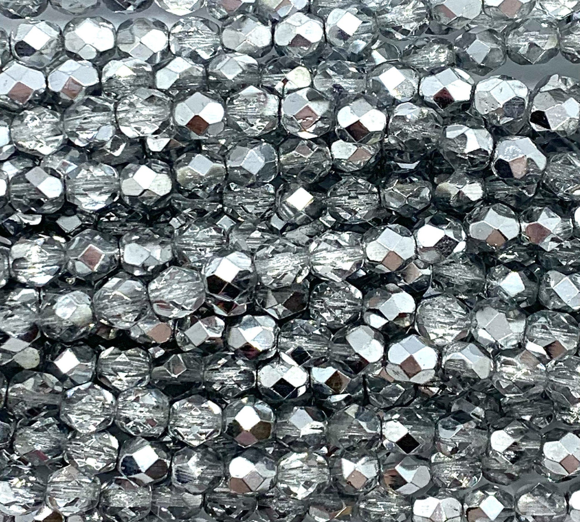 25 faceted round Czech glass beads - 6mm fire polished silver crystal mix beads - C0064