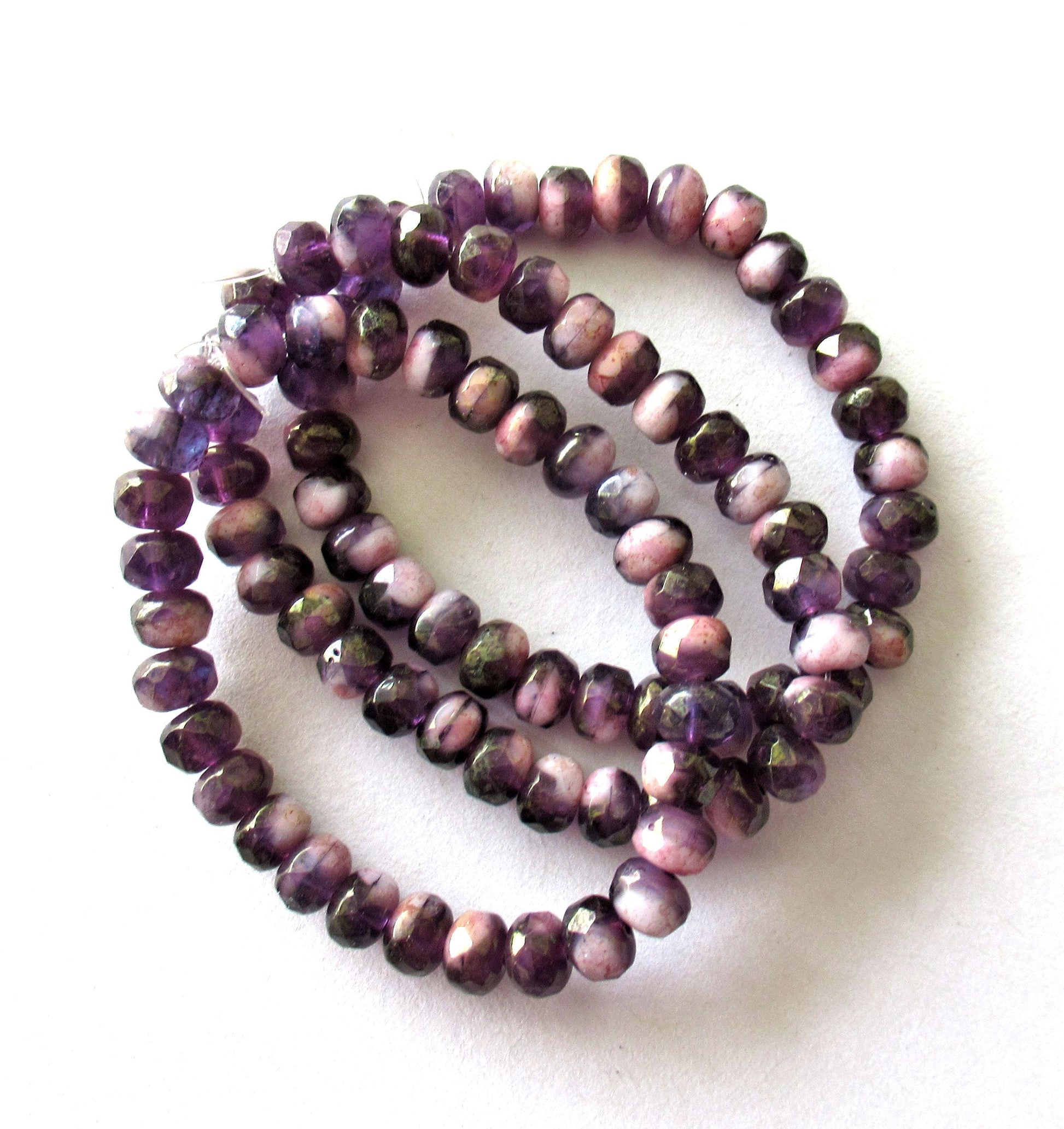 30 small Czech glass puffy rondelle beads - 3 x 5mm - tanzanite & pink luster color mix - faceted fire polished rondelles - 00011