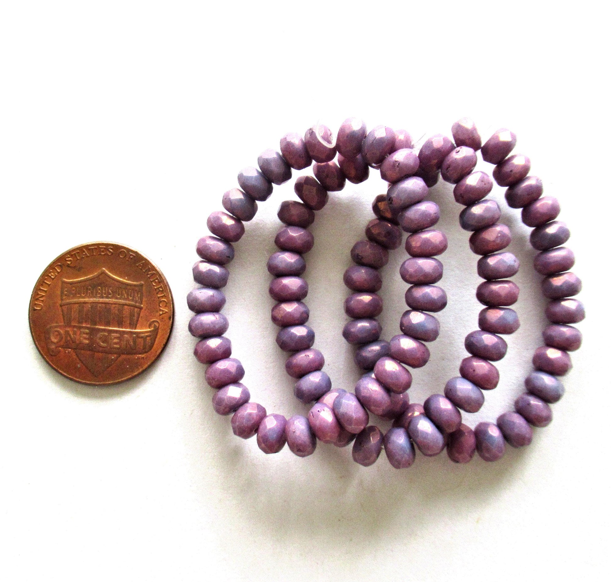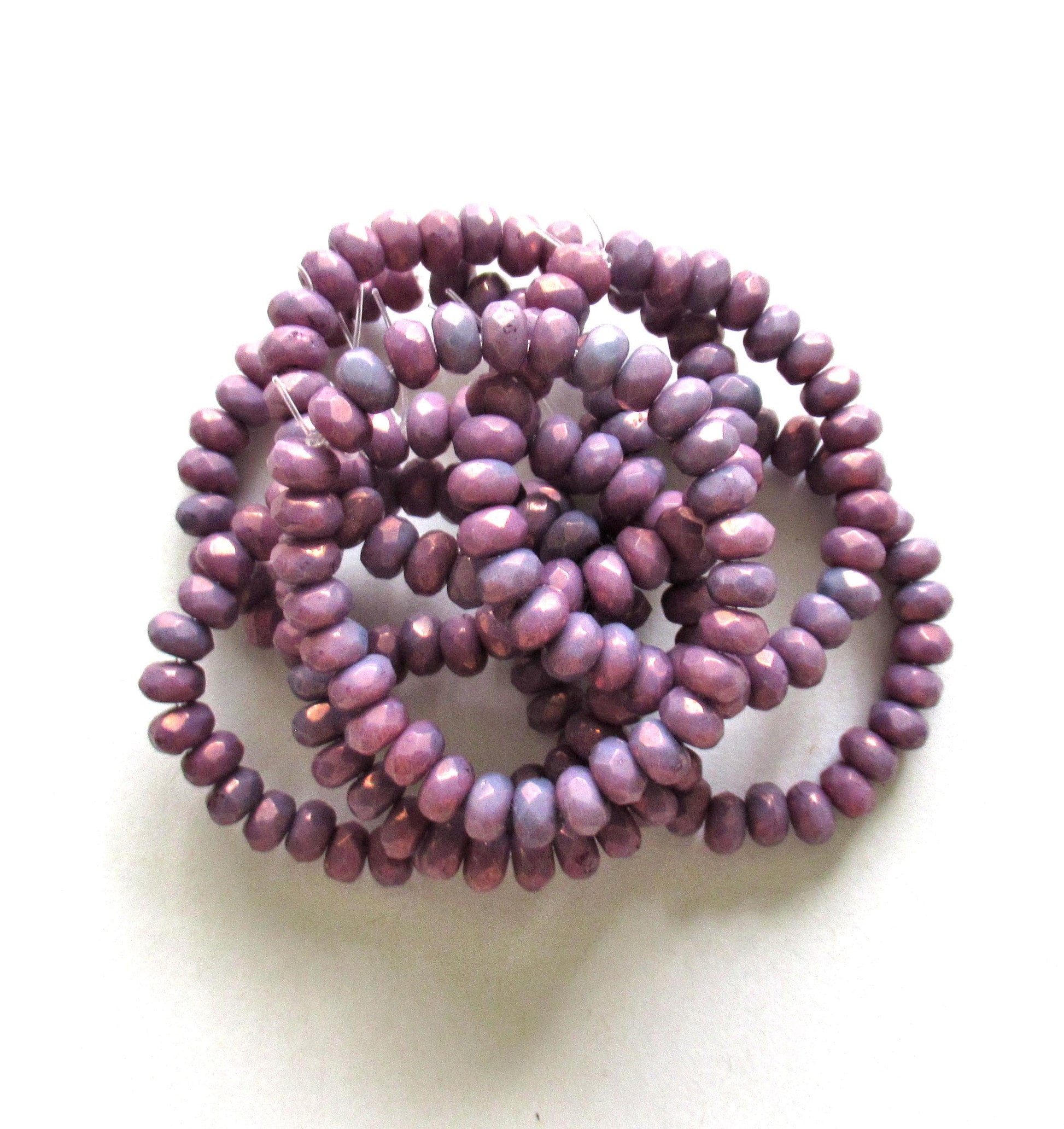 30 small Czech glass puffy rondelle beads - opaque purple luster - 3mm x 5mm - faceted rondelles - C00251
