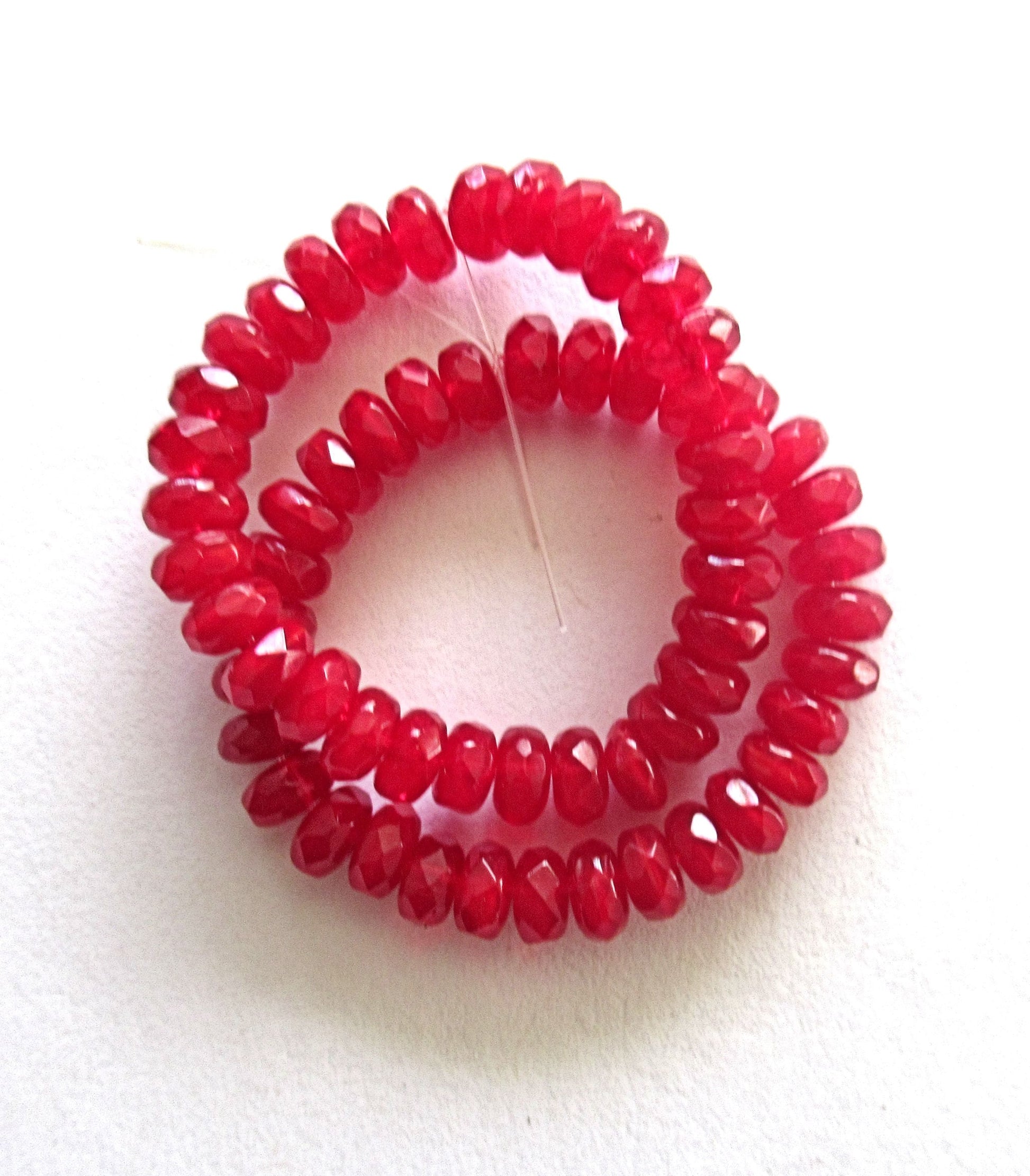 30 small picasso puffy rondelle beads - 3mm x 5mm translucent red opaline faceted Czech glass rondelles 00131