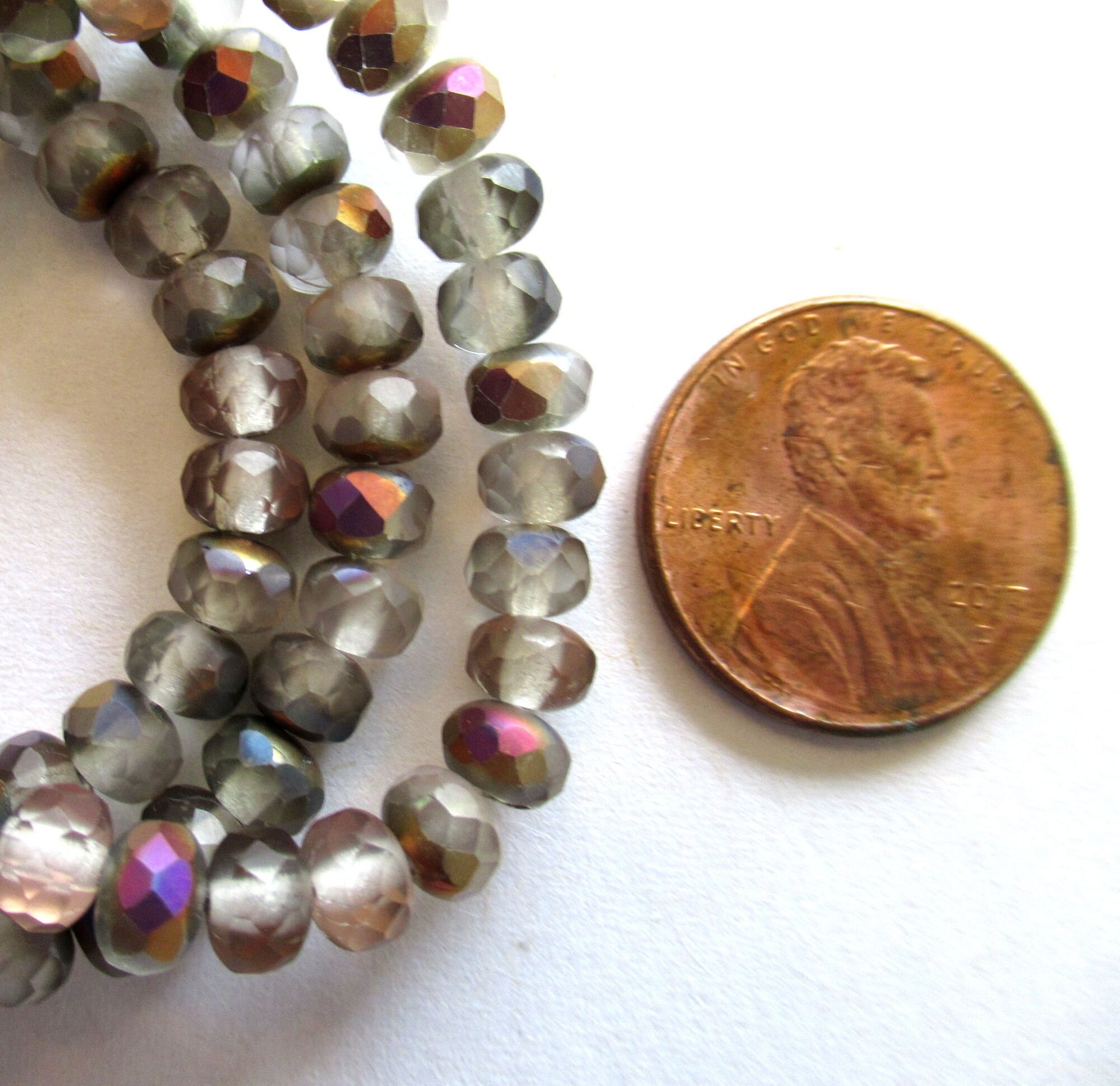 30 small puffy Czech glass rondelle beads - matte crystal gray beads with a vega finish - 3mm x 5mm faceted fire polished rondelles 00001