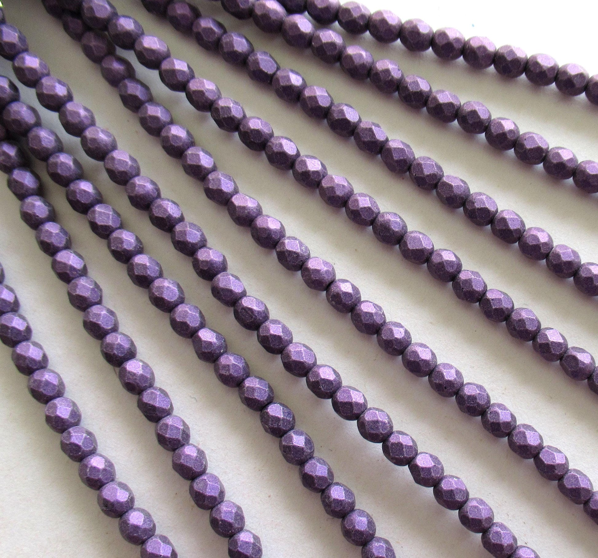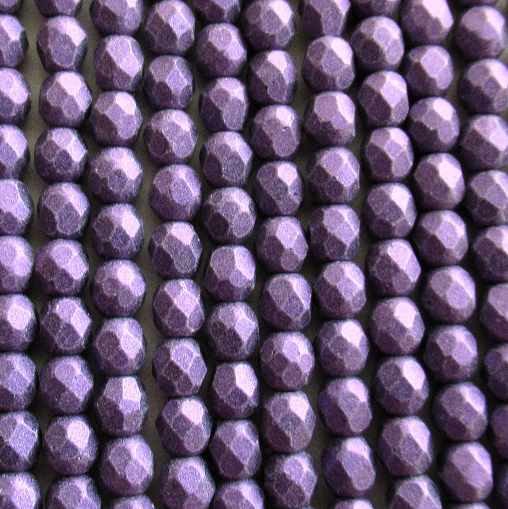 50 3mm Czech faceted round glass beads - Matte Metallic Purple Suede - fire polished beads - C0025