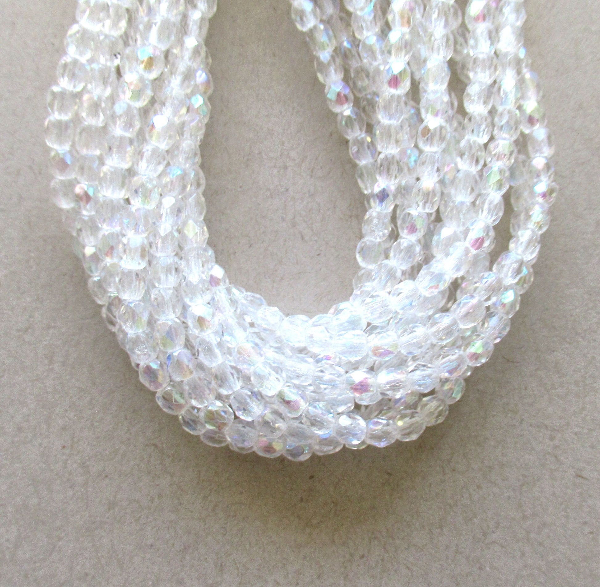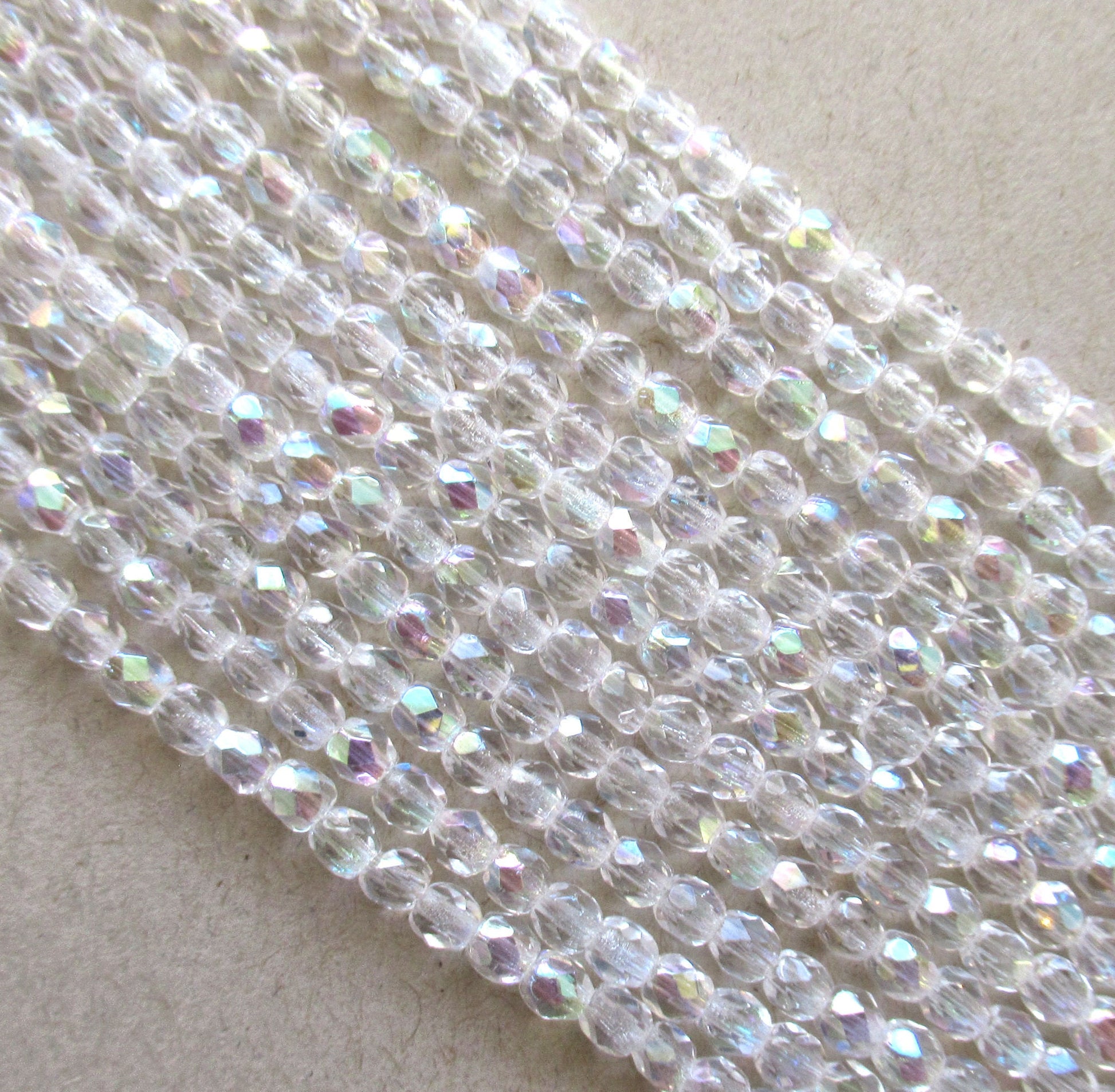 50 3mm Czech glass beads - crystal ab fire polished faceted round beads - C0084