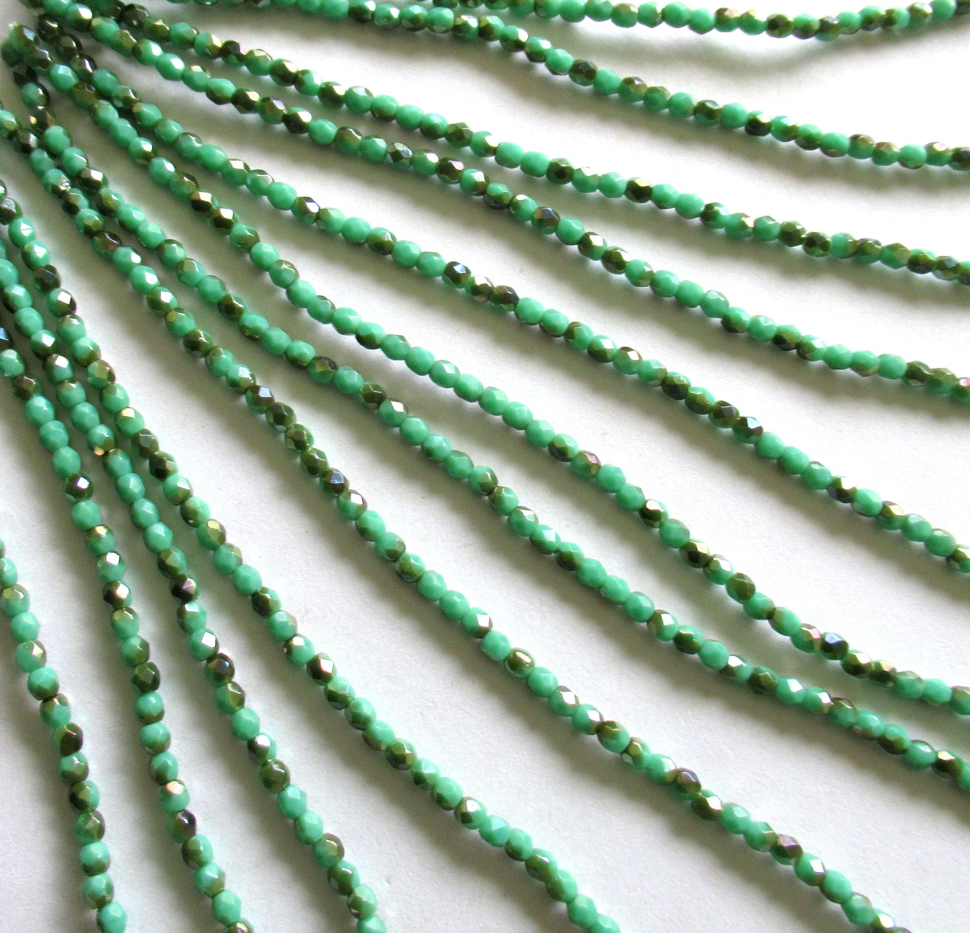 50 3mm Czech glass beads - opaque turquoise green celsian beads - fire polished faceted round beads - C0026